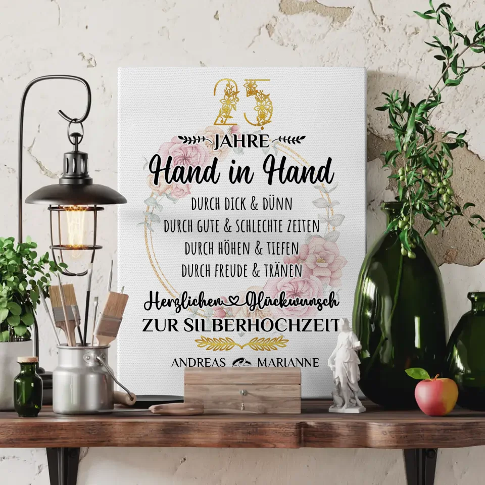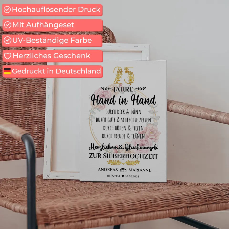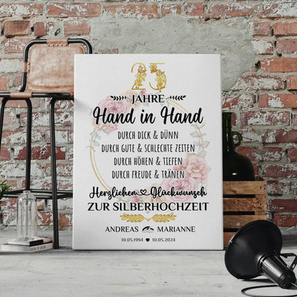 Personalisierte Leinwand Geschenk zur Silberhochzeit 25 Hochzeitstag
