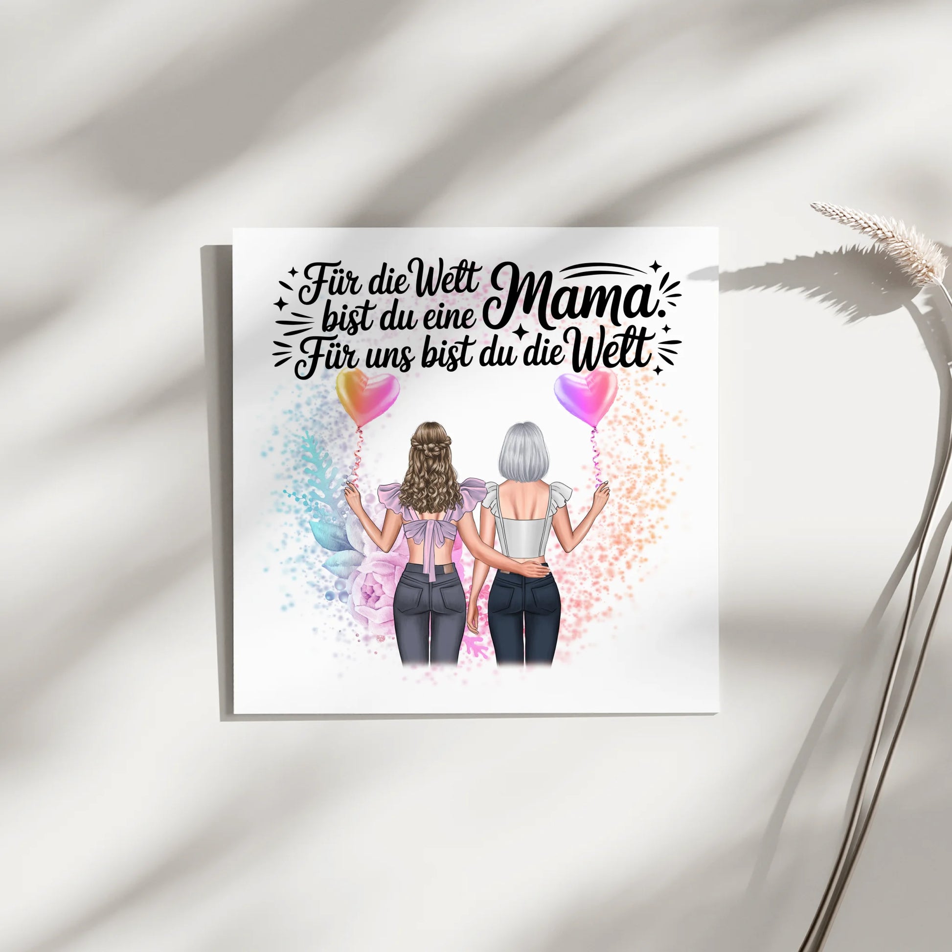Personalisierte Leinwand Mama mit 2 Clipart Frauen, Namen, Hintergrundbild & Wunschtext