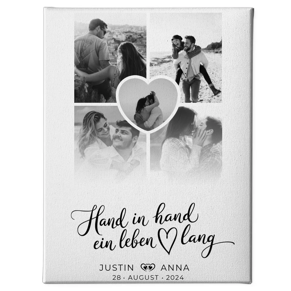 Personalisierte Leinwand Paare Fotocollage 5 Fotos Hand In Hand Ein Leben Lang mit Namen und Datum