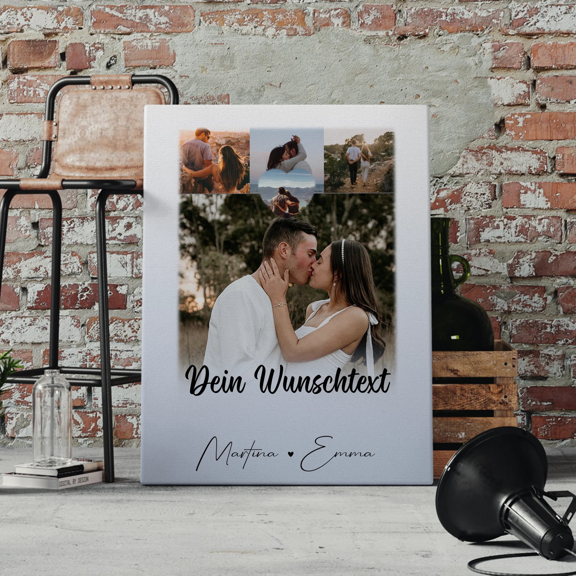 Personalisierte Leinwand Paare mit 4 Fotos 1 Herz Wunschtext Real Love Storys Never End