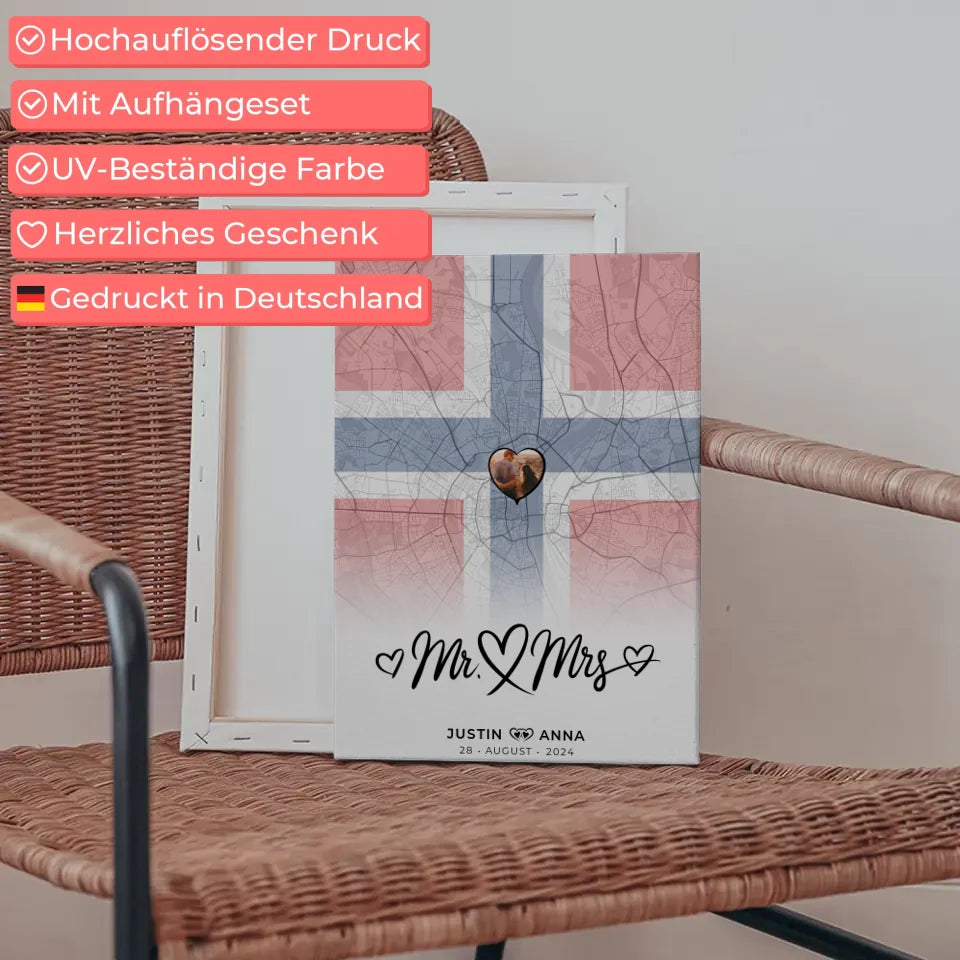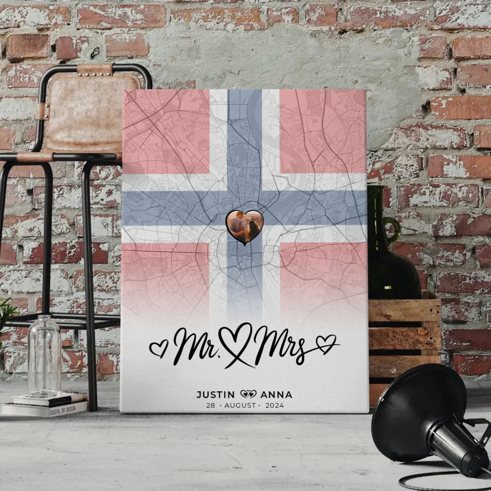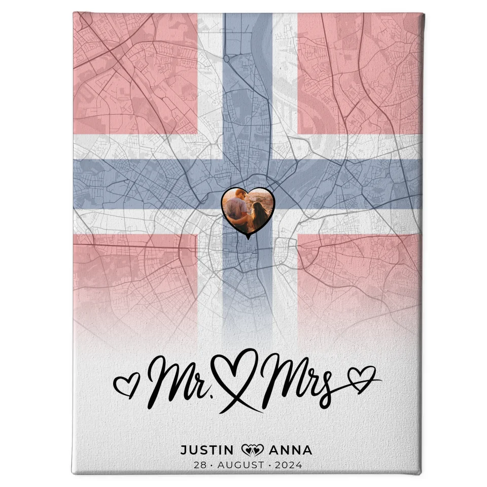 Personalisierte Leinwand Paare Norwegen Stadtkarte Mr & Mrs Foto