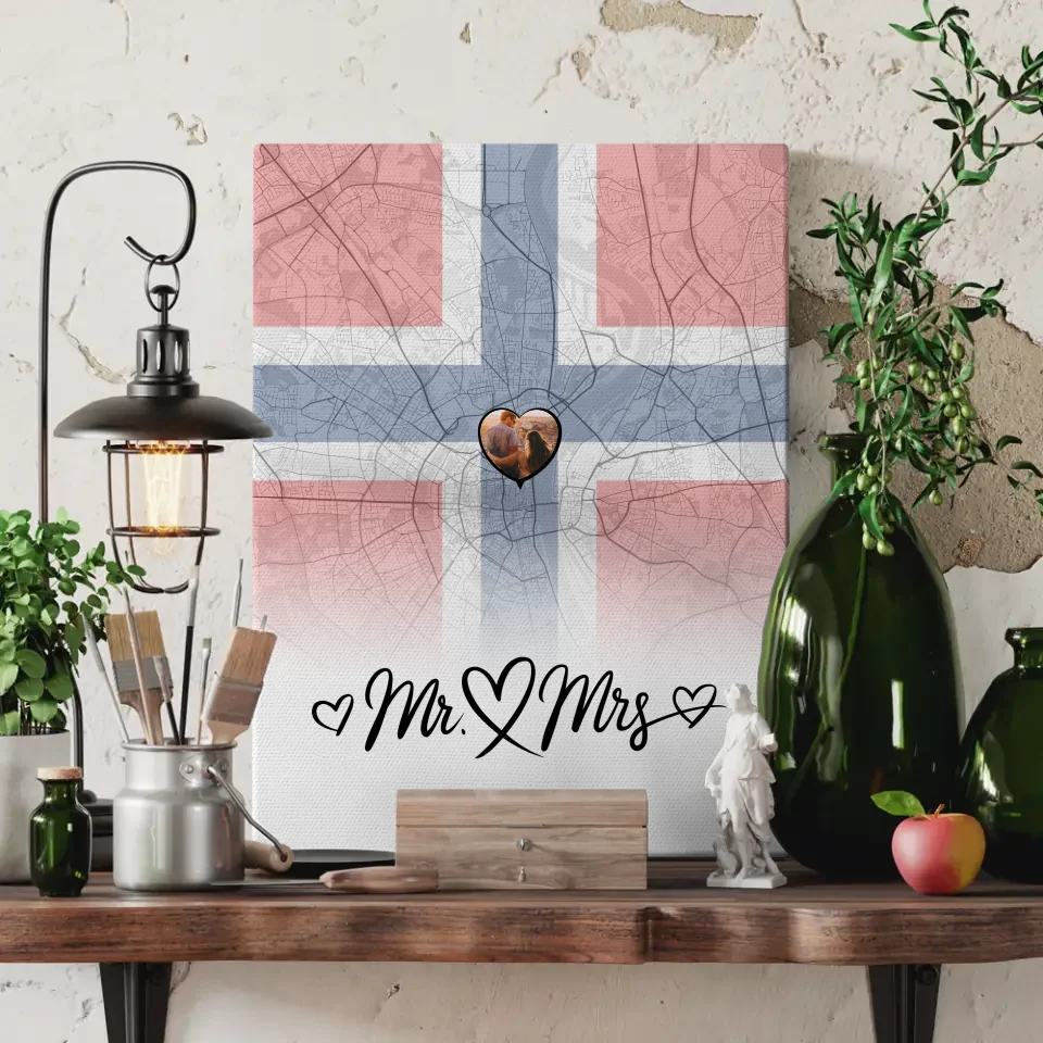 Personalisiert Leinwand Paare Norwegen Stadtkarte Mr & Mrs Foto