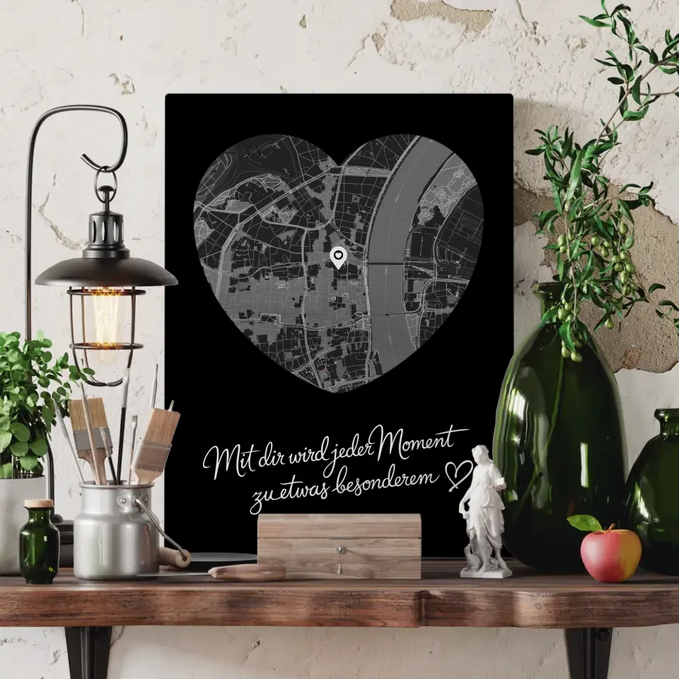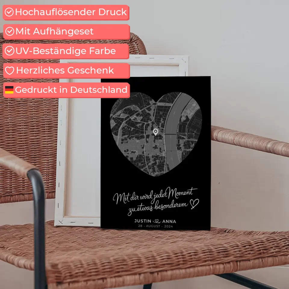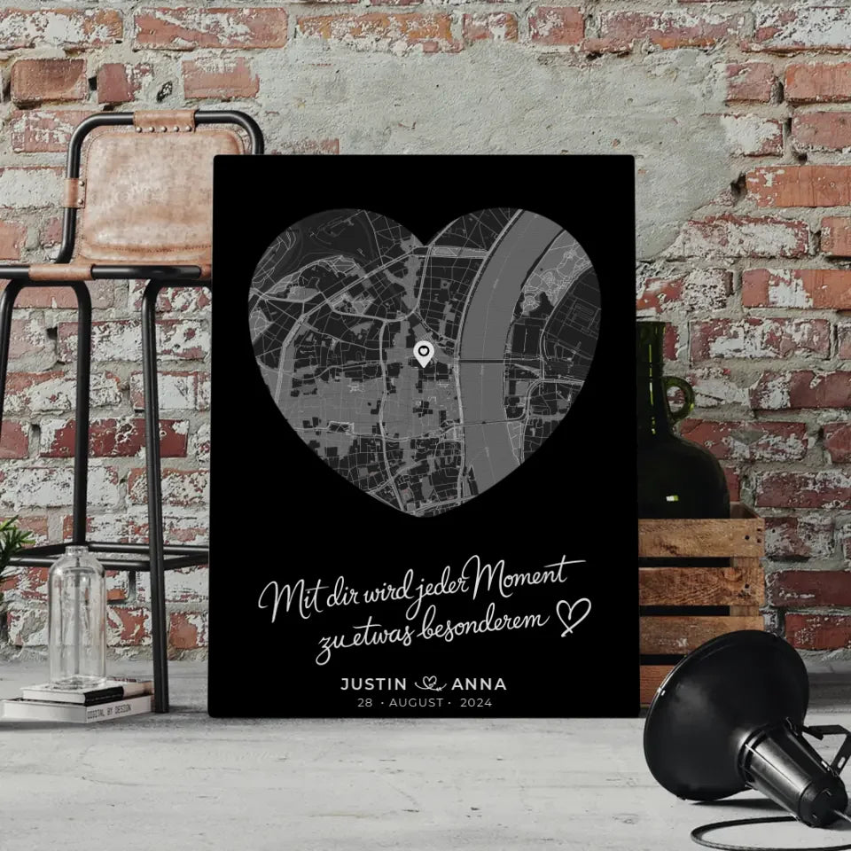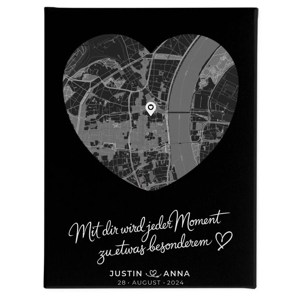 Personalisierte Leinwand Paare Stadtkarte Herzform Jeder Moment Geschenk