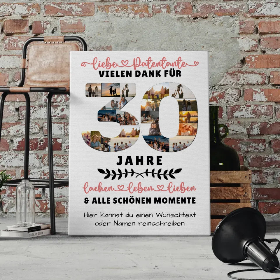 Personalisierte Leinwand Patentante 30 Geburtstag Lachen Leben Fotos