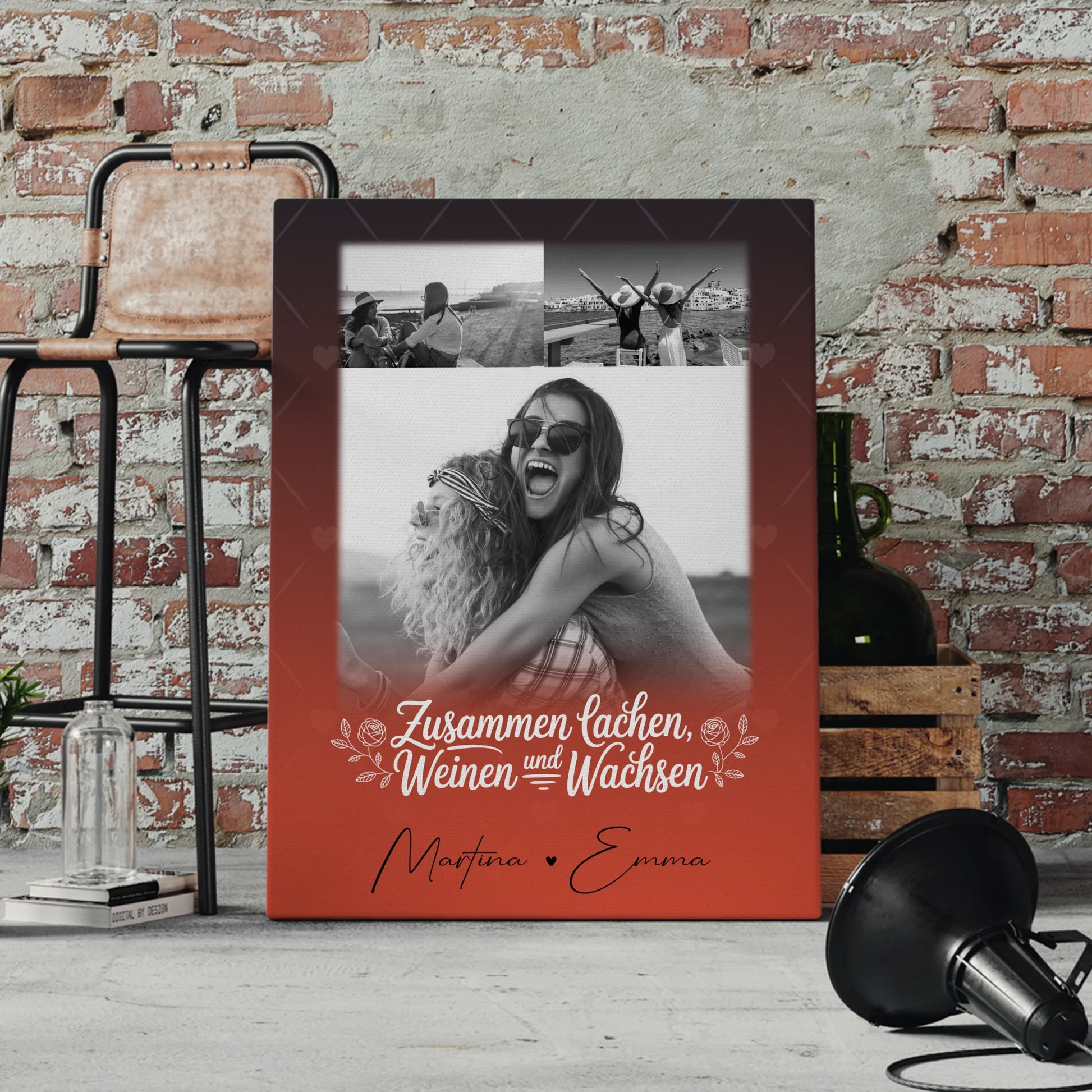 Personalisierte Leinwand Schwester mit 3 Fotos Zusammen lachen weinen Geschenkidee