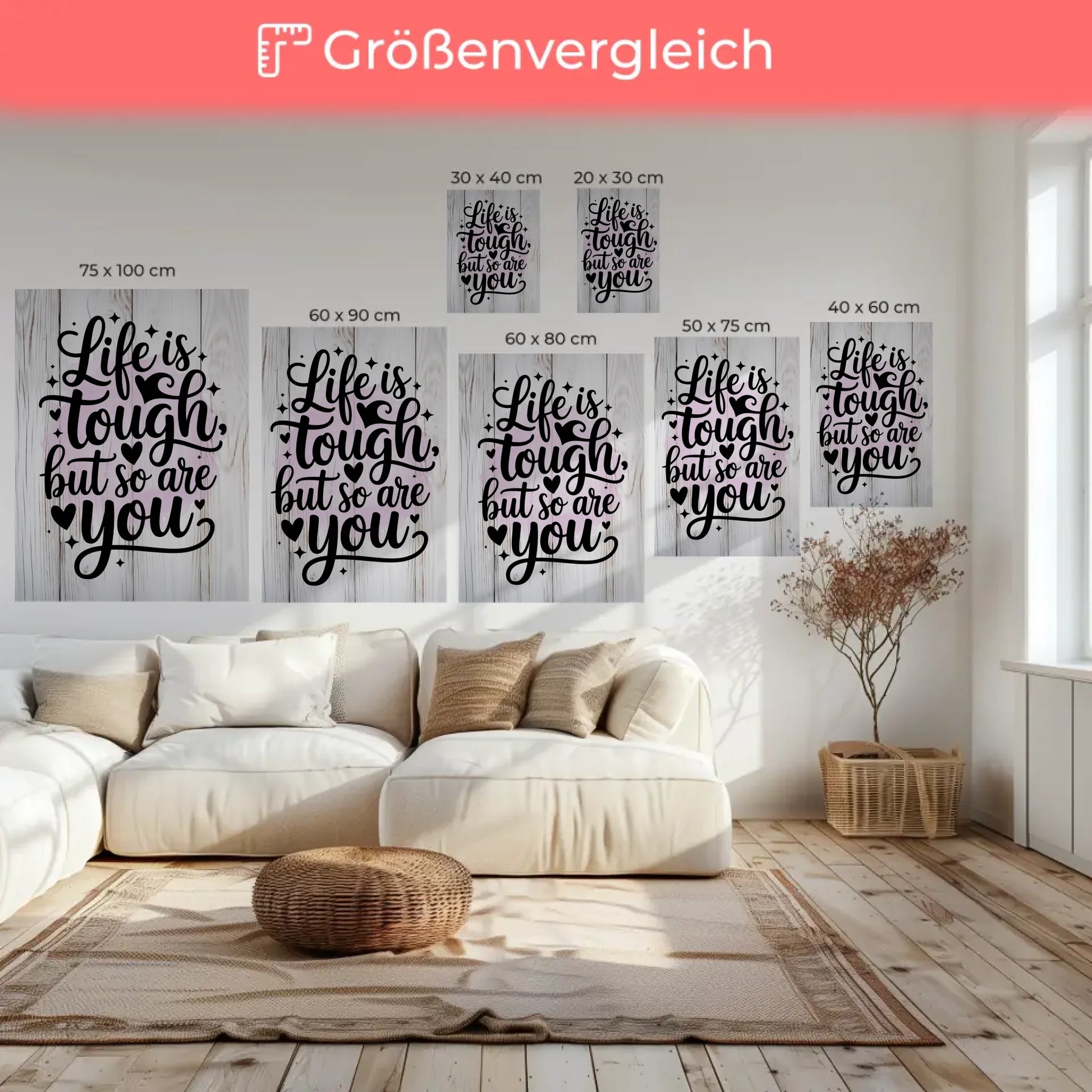 Entdecke die perfekte Möglichkeit, Deine Motivationssprüche in Form einer einzigartigen Leinwand zum Leben zu erwecken! Unsere personalisierte Leinwand Spruch 'Life is tough but so are you' ist nicht nur ein inspirierendes Wanddekoration, sondern auch ein kraftvolles Geschenk für jeden Anlass. Du kannst das Hintergrundbild ganz nach Deinen Wünschen anpassen und somit eine Leinwand mit Spruch selbst gestalten, die Deine persönliche Note trägt.