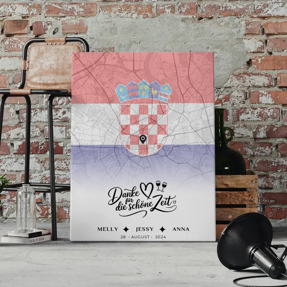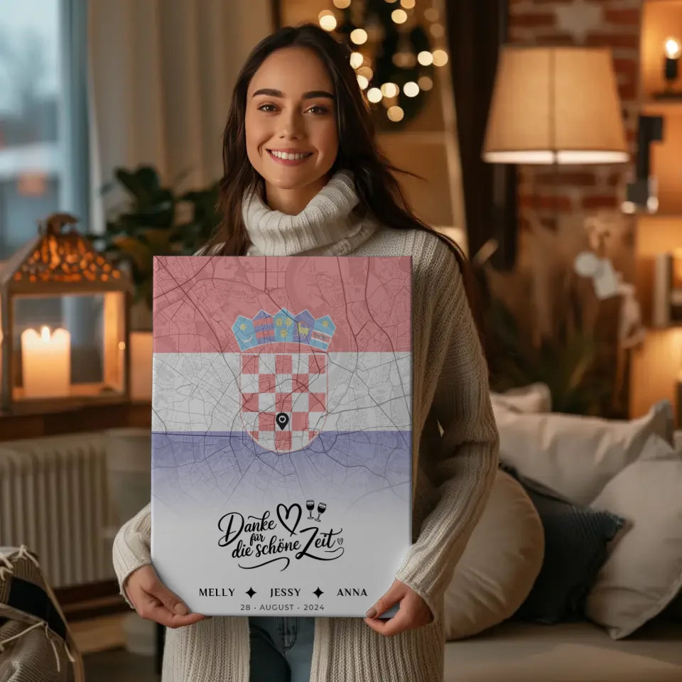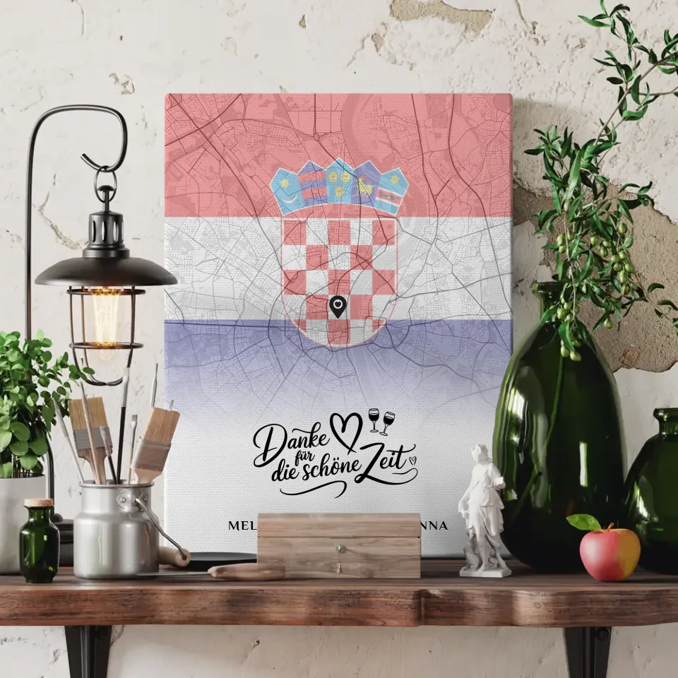 Personalisierte Leinwand Stadtkarte Kroatien für Schwester - Danke für die schöne Zeit