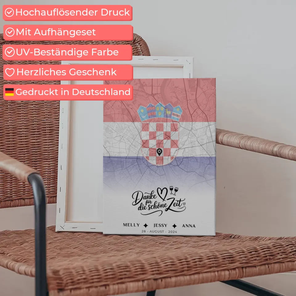 Personalisierte Leinwand Stadtkarte Kroatien für Schwester Danke für die schöne Zeit