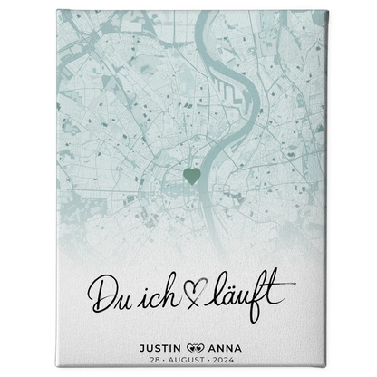 Personalisierte Leinwand Stadtkarten Paare Du Ich Läuft Mintgrün