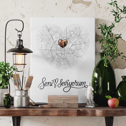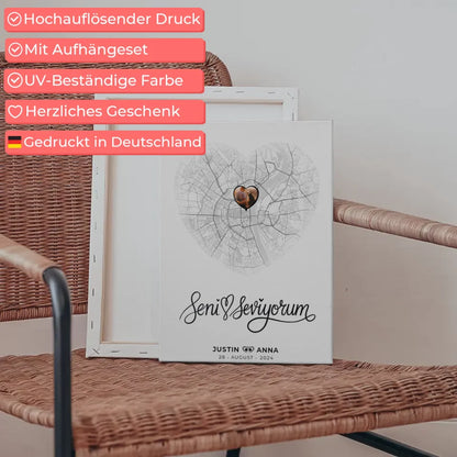 Personalisierte Leinwand Stadtkarten Paare Herz Seni Seviyorum