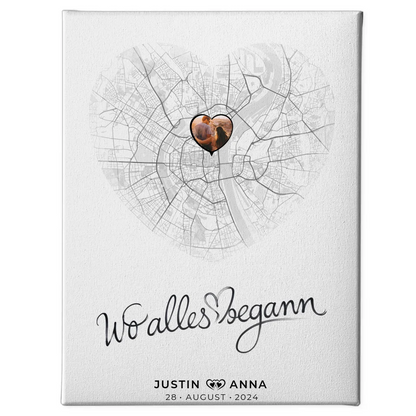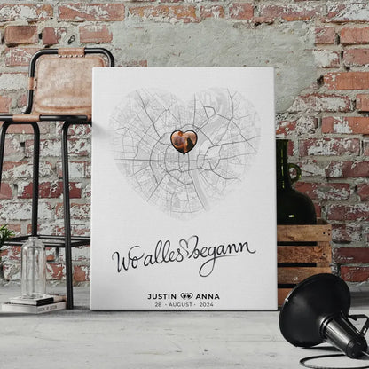 Personalisierte Leinwand Stadtkarten Paare Herz Wo Alles Begann