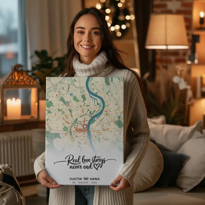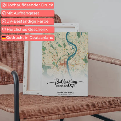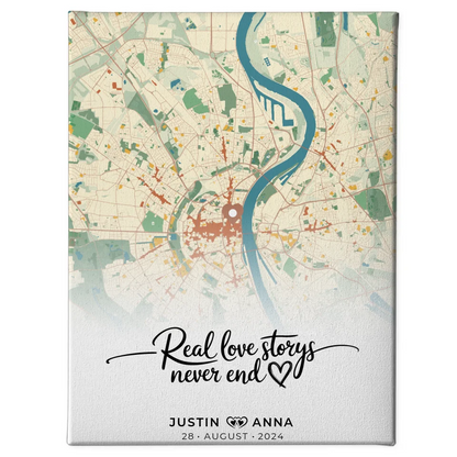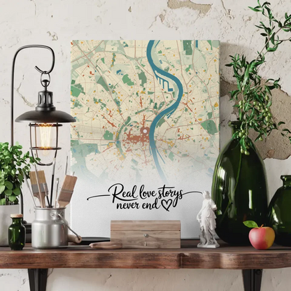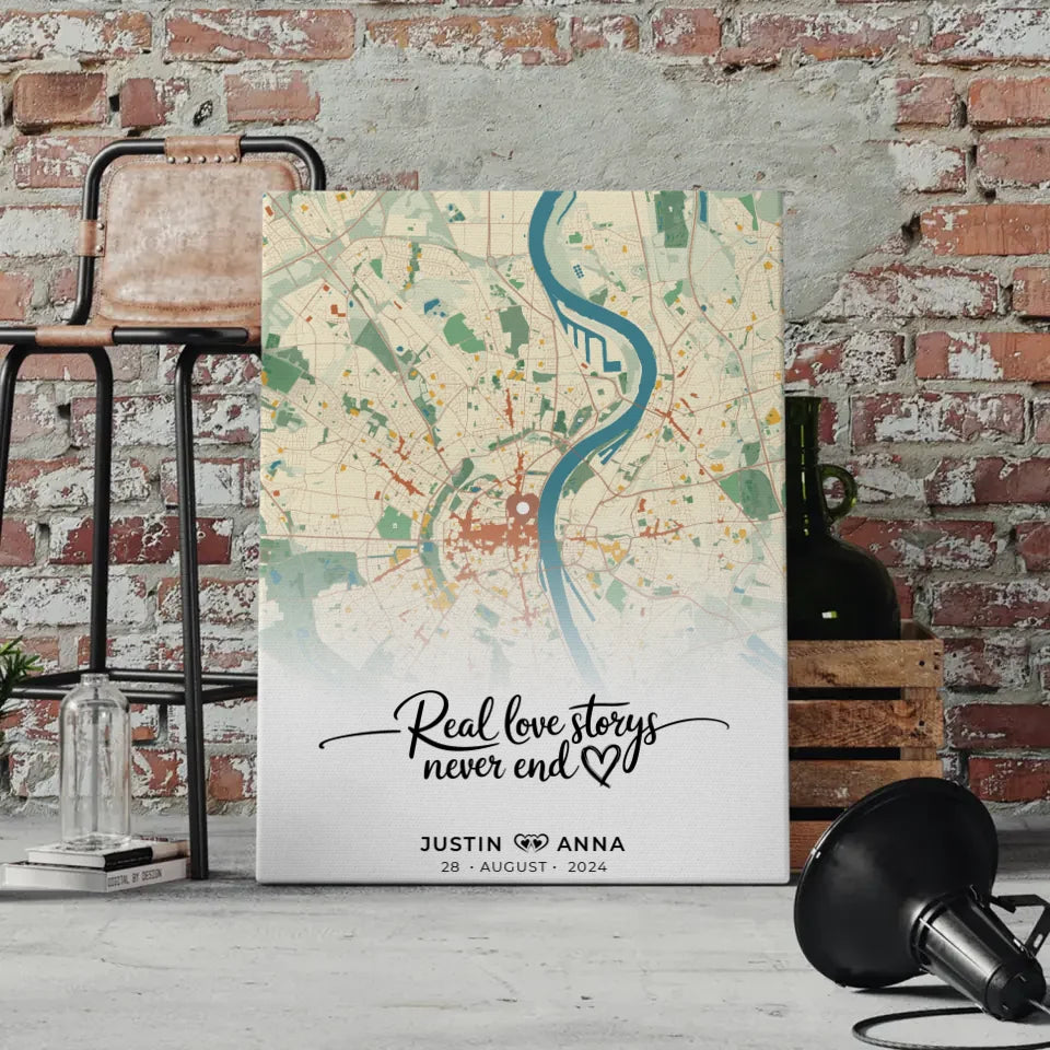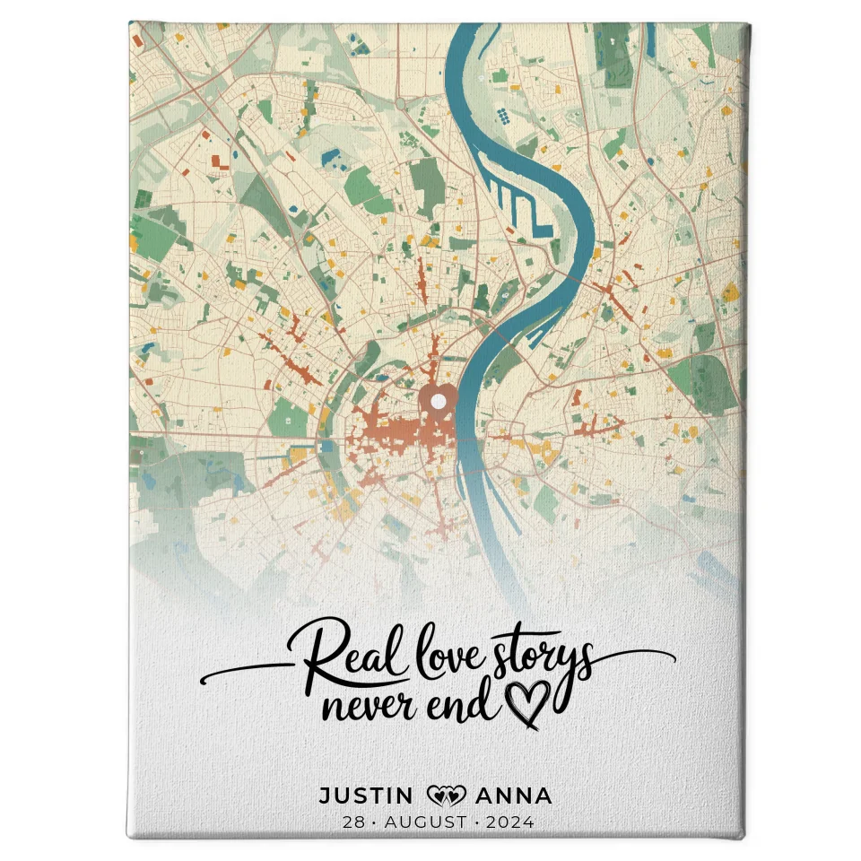 Personalisierte Leinwand Stadtkarten Paare Real Love Storys Never End Retro