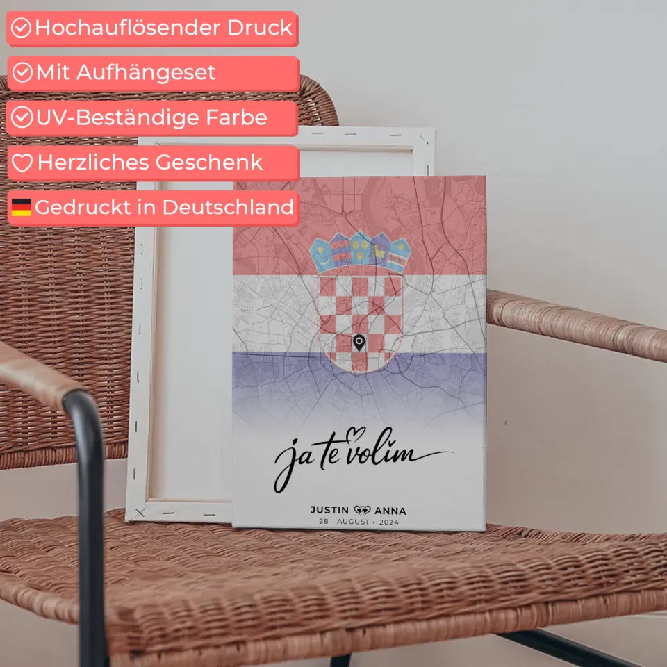 Personalisierte Leinwand Stadtkartenleinwand Paare Urlaub Kroatien Ja Te Volim