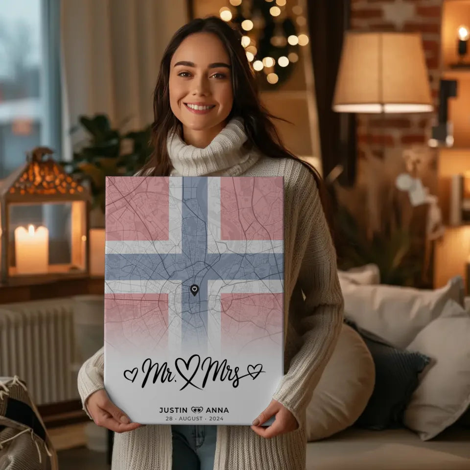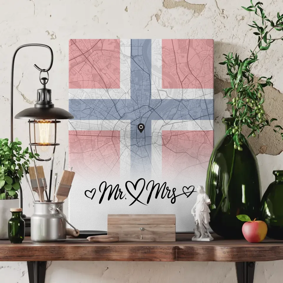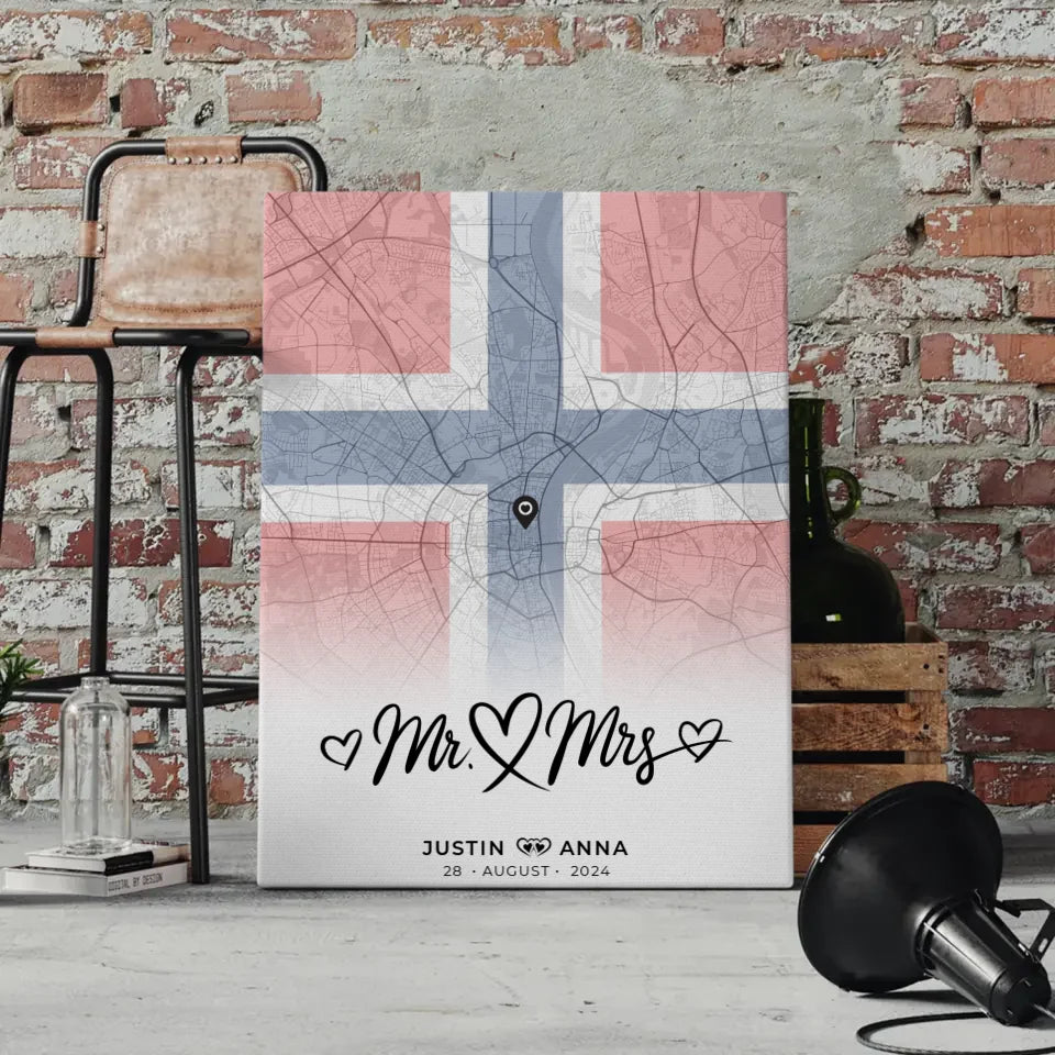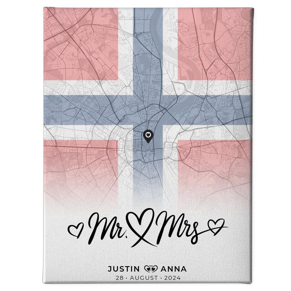 Personalisierte Leinwand Stadtkartenleinwand Paare Urlaub Norwegen Mr & Mrs