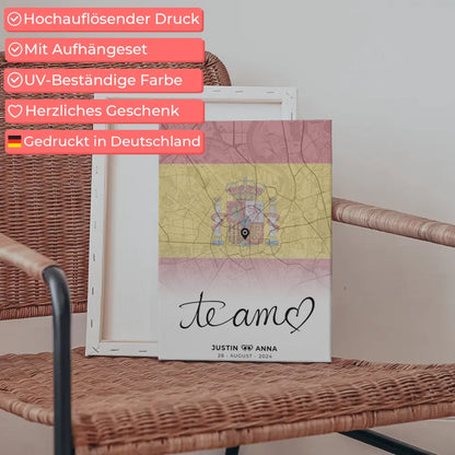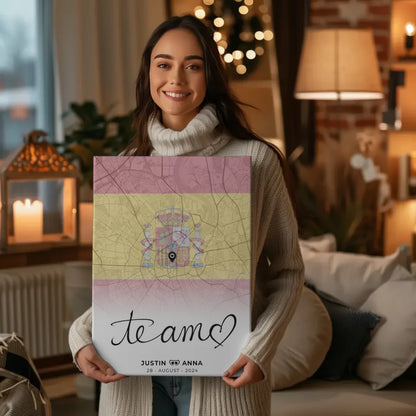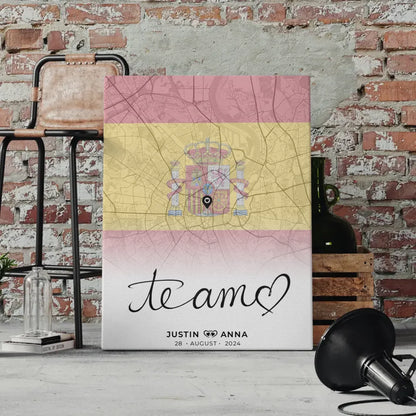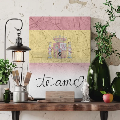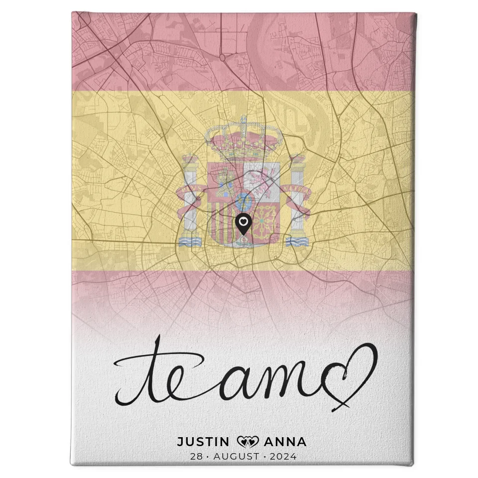 Personalisierte Leinwand Stadtkartenleinwand Paare Urlaub Spanien Te Amo