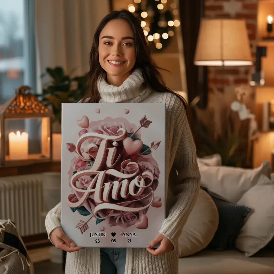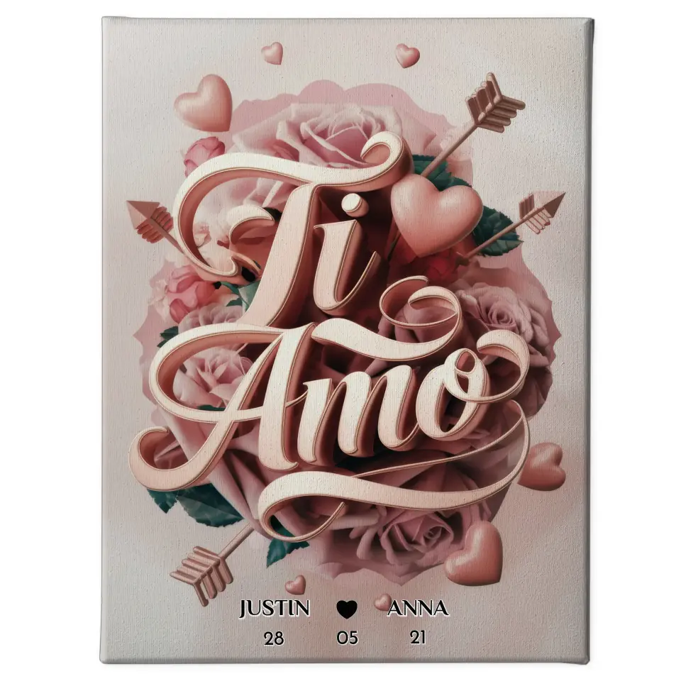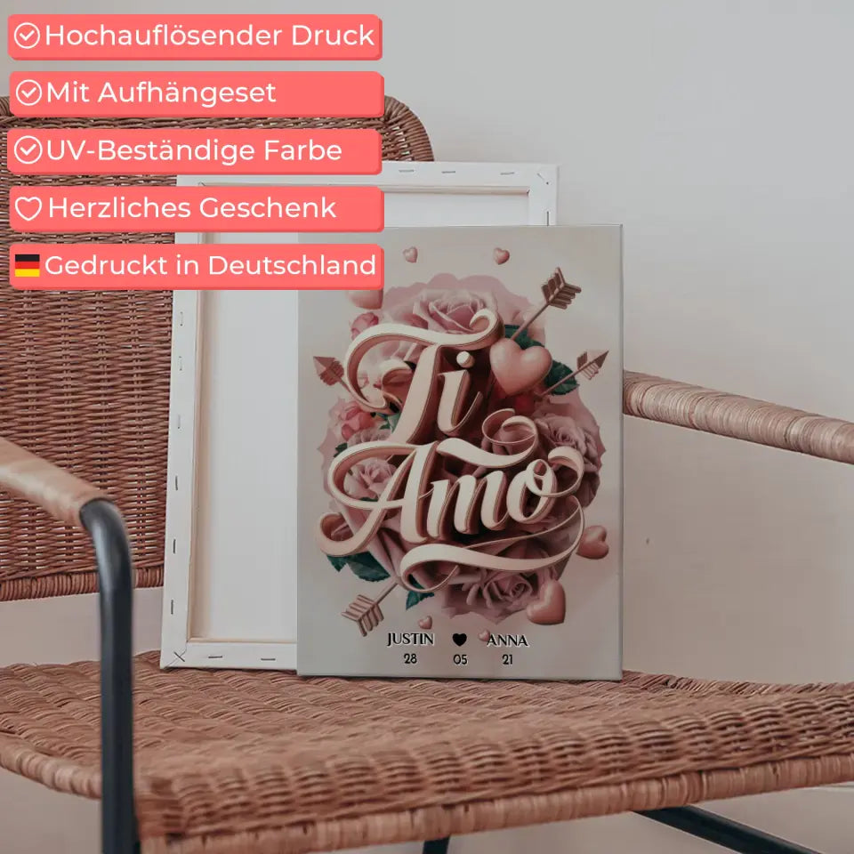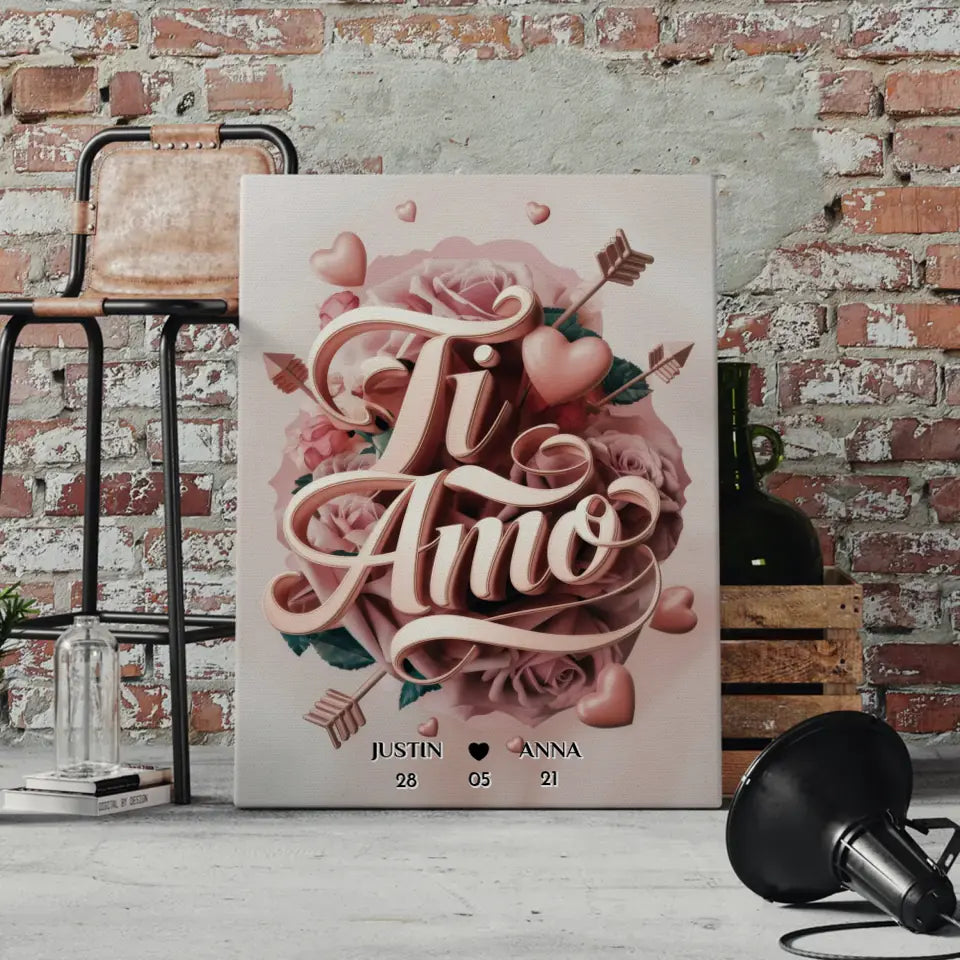 Unsere Personalisierte Leinwand Ti Amo mit Namen & Datum