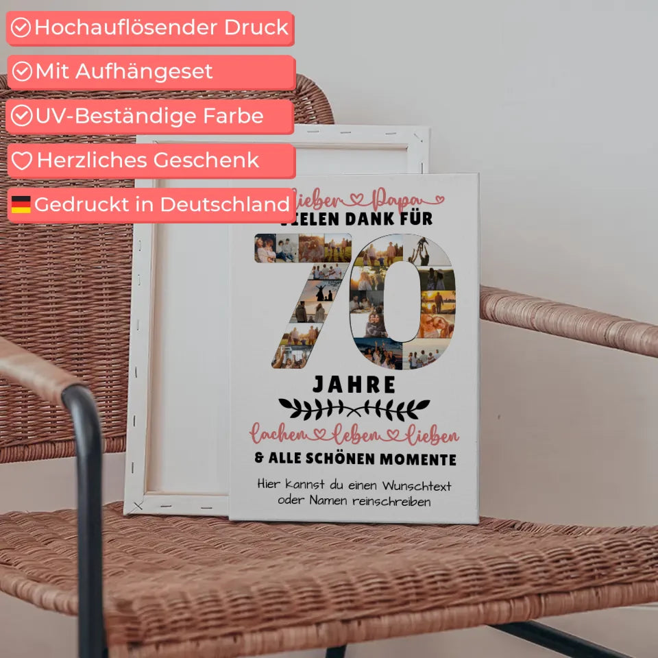 Personalisierte Leinwand zum 70 Geburtstag für Papa mit Fotos