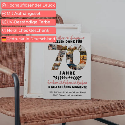 Personalisierte Leinwand zum 70. Geburtstag für Papa mit Fotos