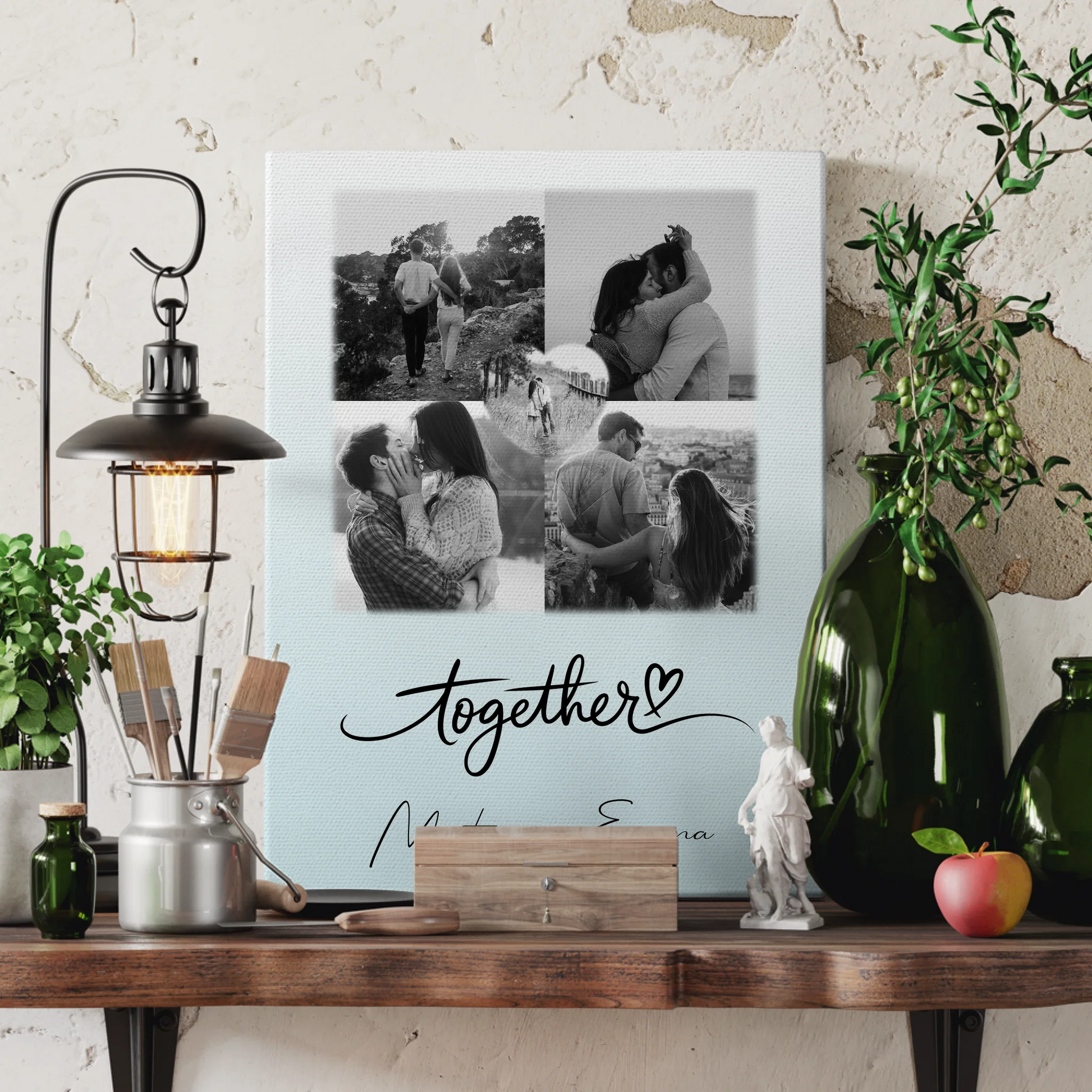 Personalisierte Leinwandbild Paar mit 4 Fotos und 1 Herz Foto Together für besondere Geschenke