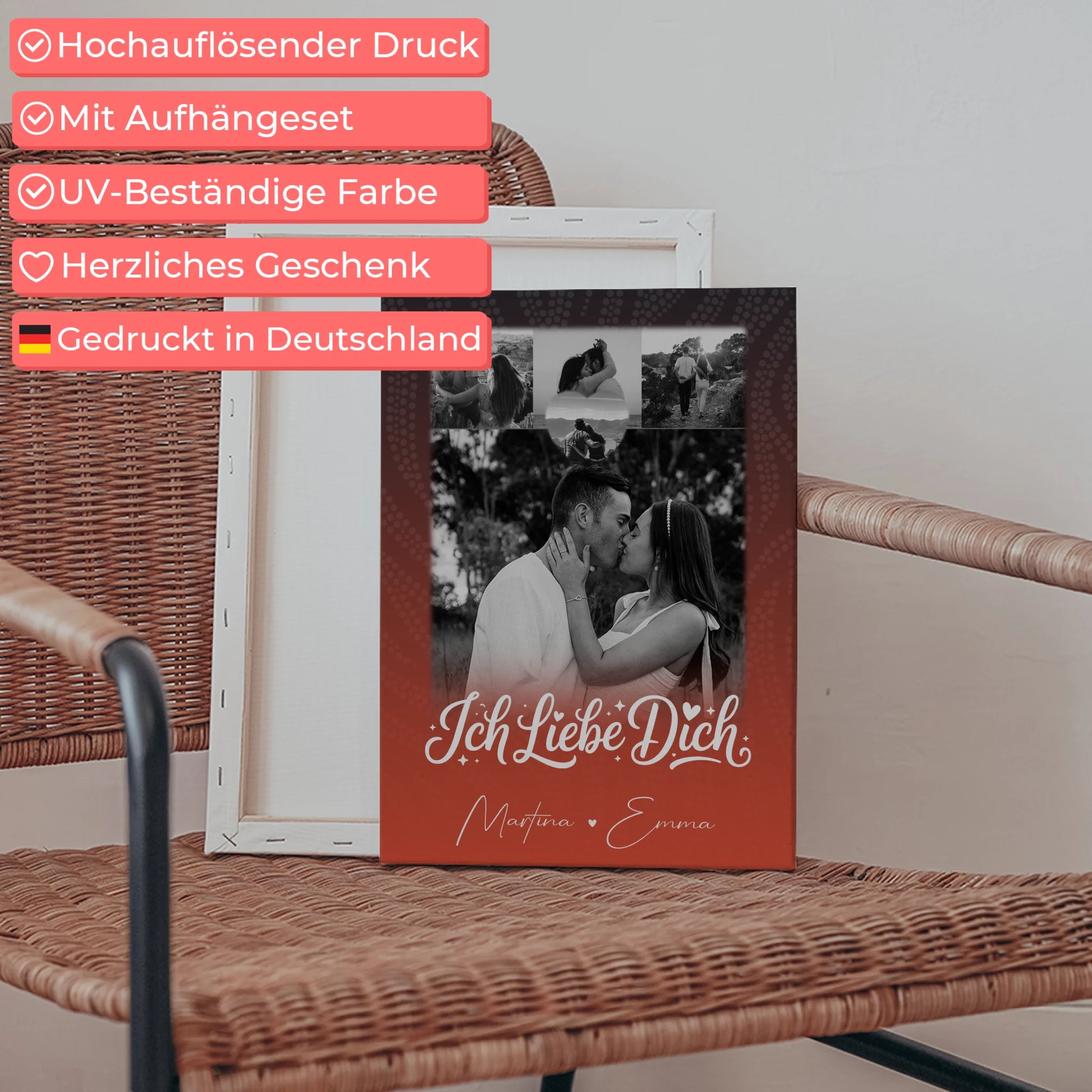 Personalisierte Leinwandbild Paar mit 4 Fotos und kleinem Herz Foto Te Amo Geschenk