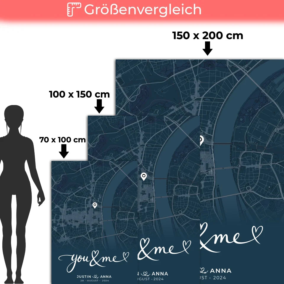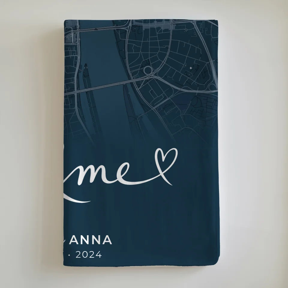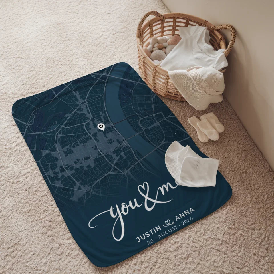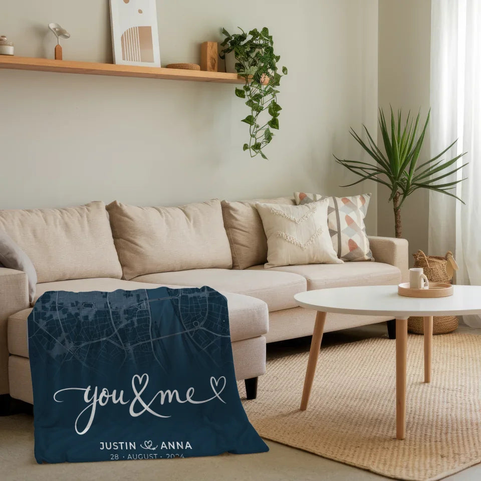 Personalisierte Liebes Decke Blau mit Stadtkarte für Paare You & Me