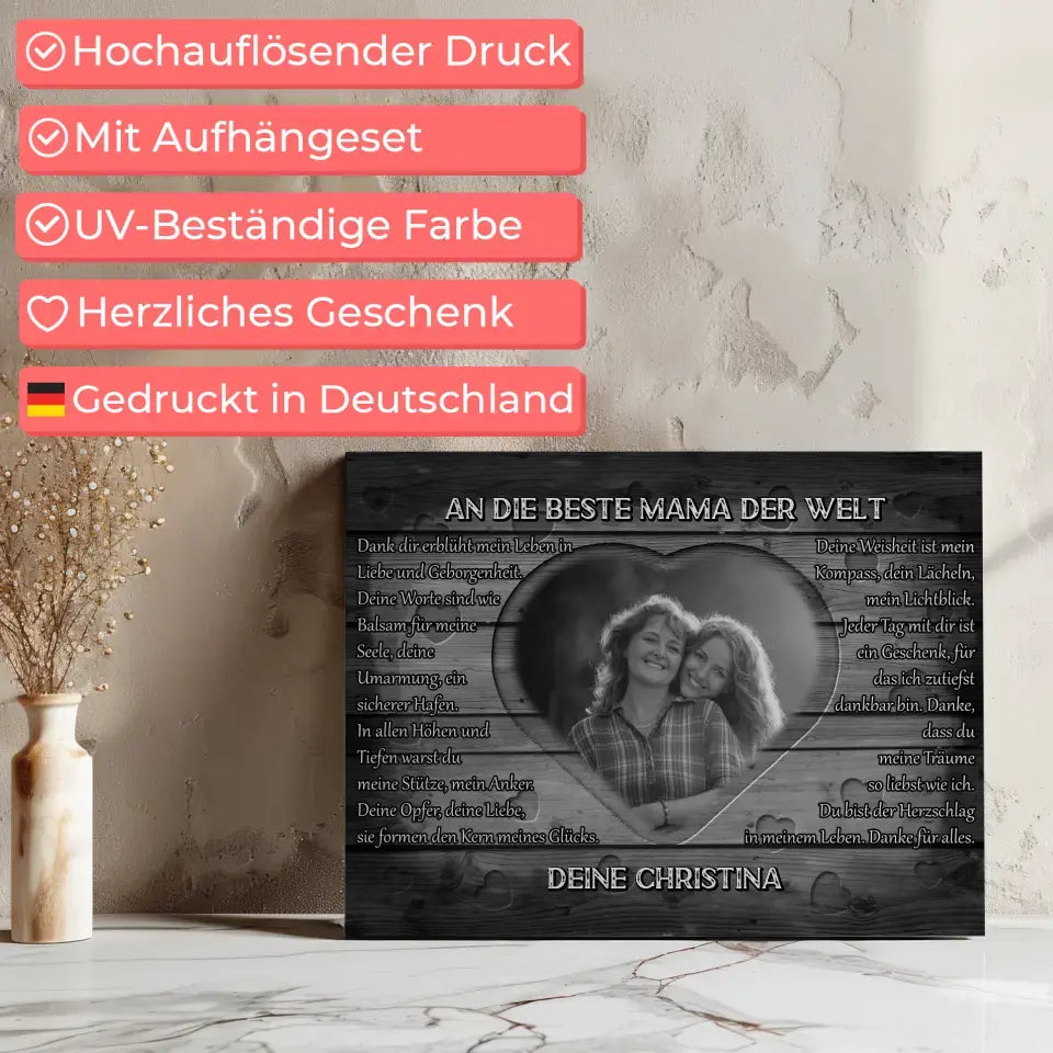 Personalisierte Mama Leinwand DANKE Schwarz Weiß