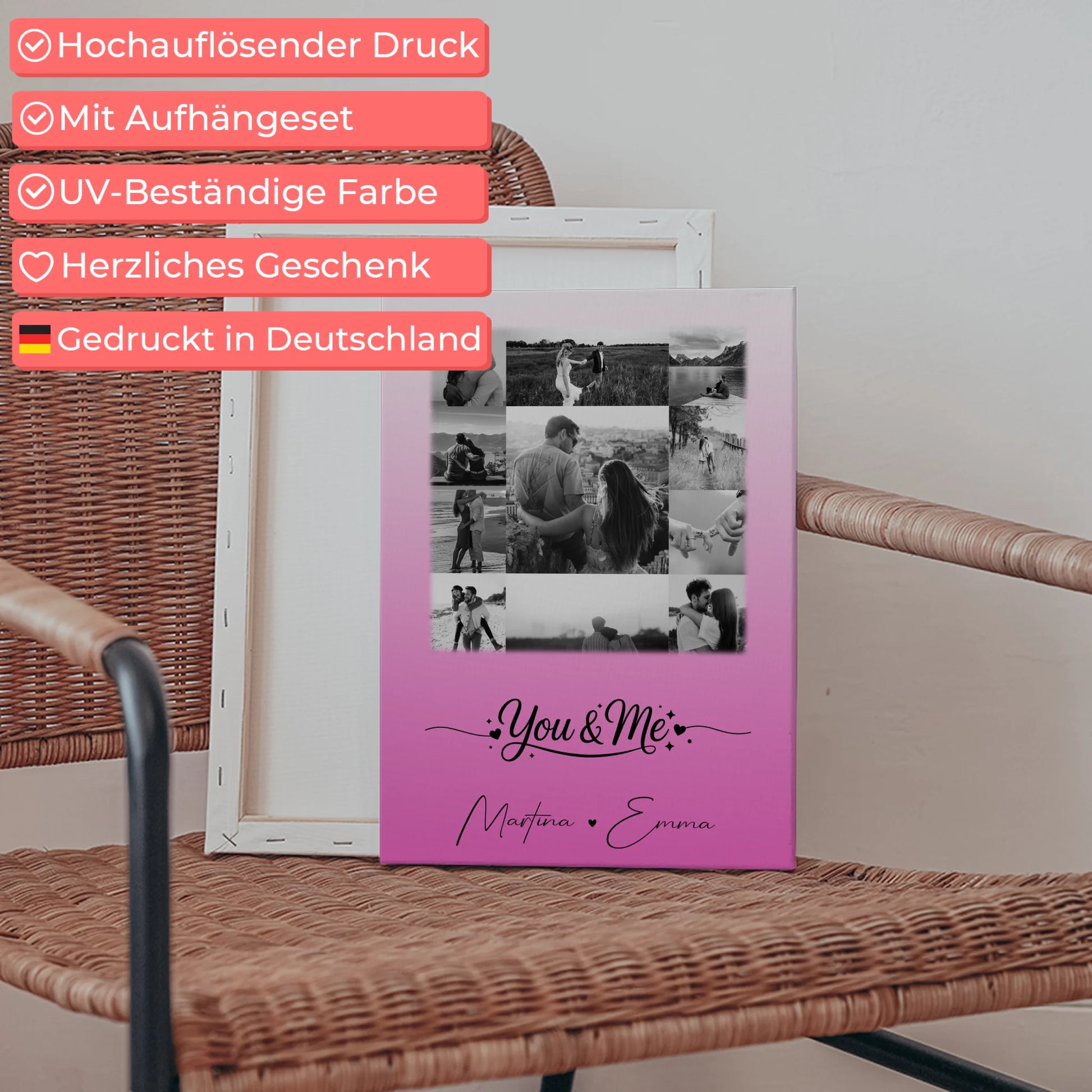 Personalisierte Pärchen Leinwand mit 11 Fotos You & Me Geschenk für Verliebte