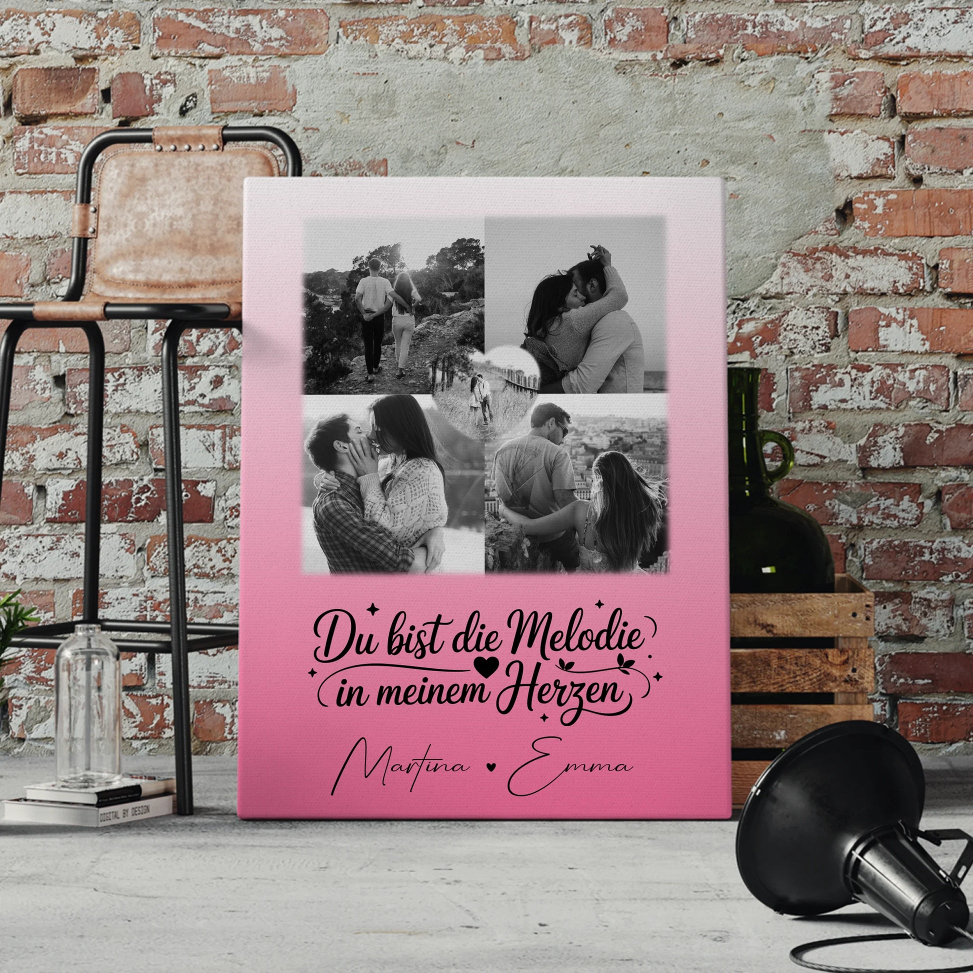 Personalisierte Pärchen Leinwand mit 4 Fotos und Herz Foto Melodie in meinem Herzen Geschenk