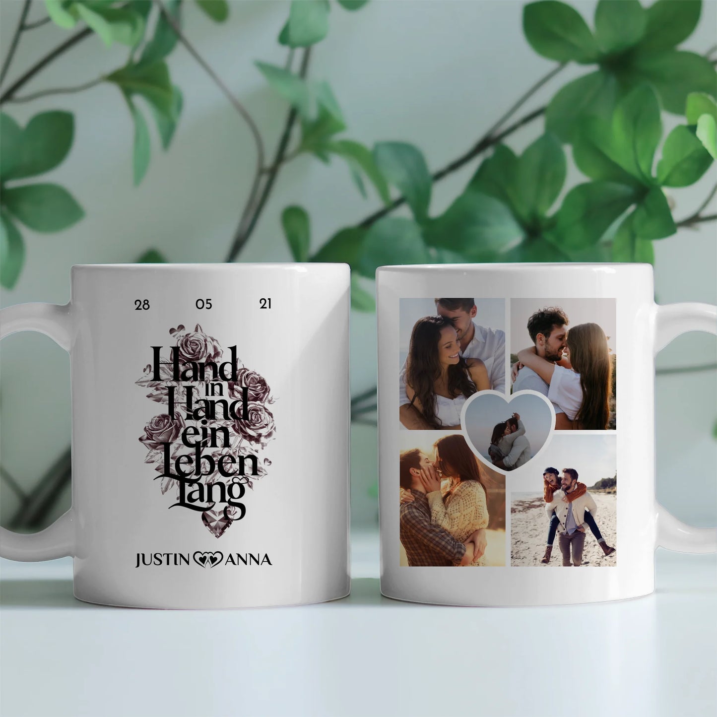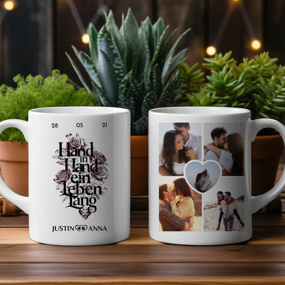 Personalisierte Pärchen Tasse mit 5 Fotos Hand in Hand ein Leben lang