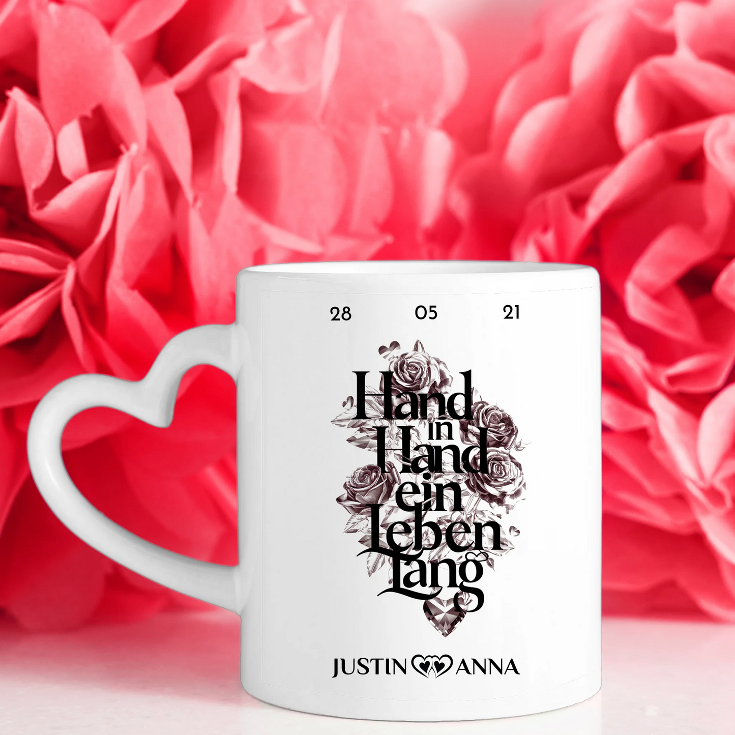 Unsere Personalisierte Pärchen Tasse mit 5 Fotos Hand in Hand ein Leben lang