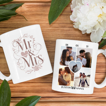 Unsere Personalisierte Pärchen Tasse Mr & Mrs Pinke Rosen mit 5 Fotos
