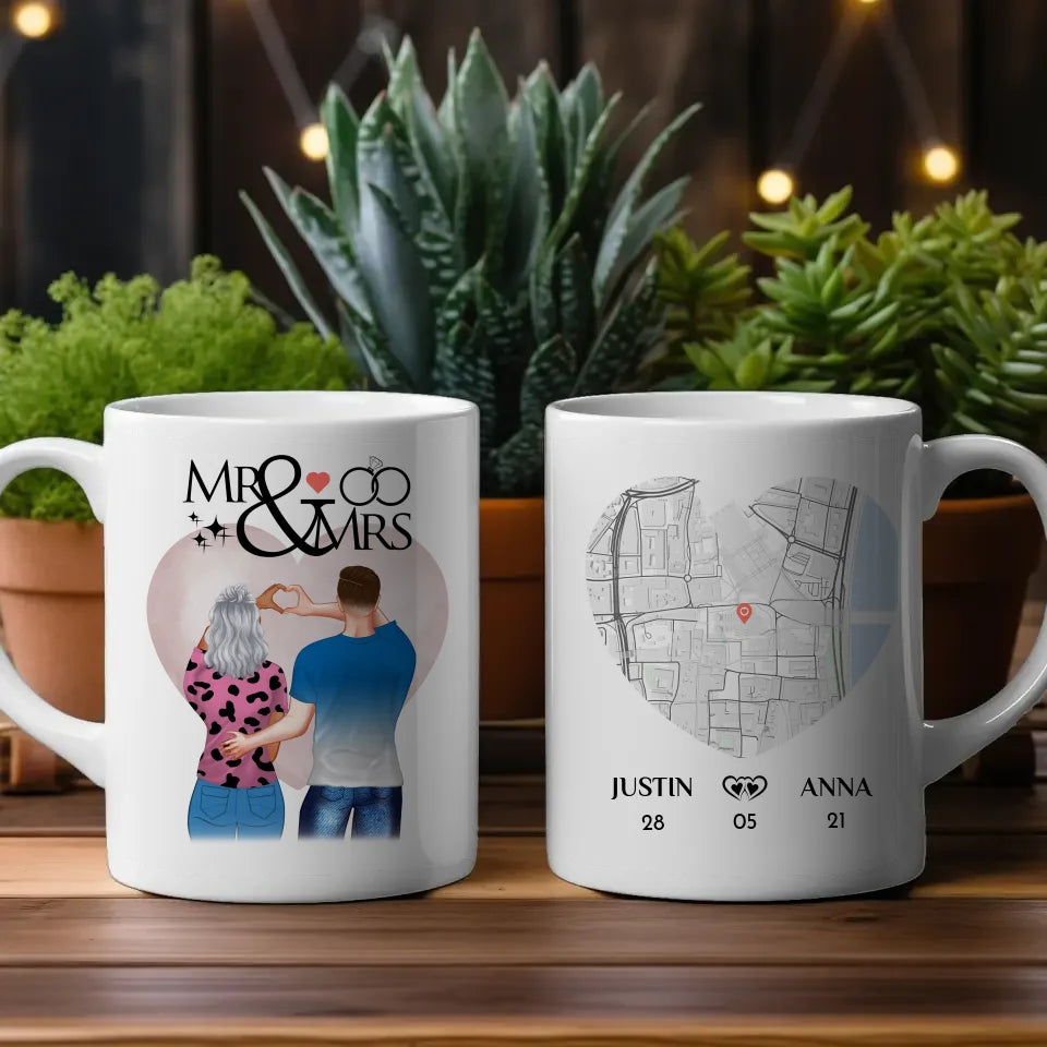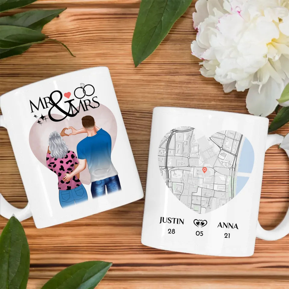 Du magst einzigartige Geschenke? Dann ist Unsere Personalisierte Pärchen Tasse Stadtkarte Mr & Mrs Pärchen Cliparts Liebe ein schönes und einzigartiges personalisiertes Geschenk.