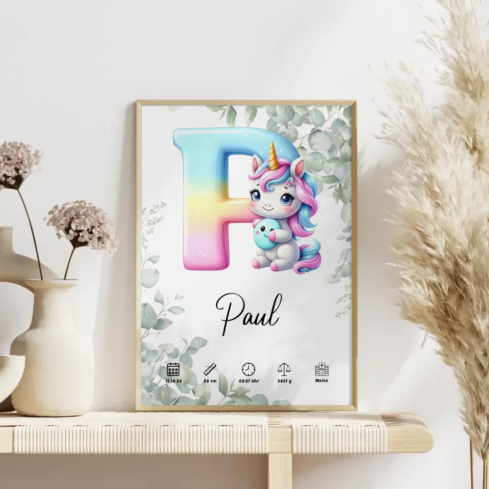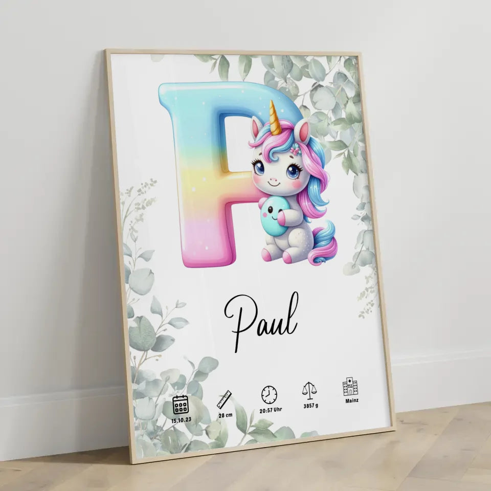 Entdecke unsere einzigartigen personalisierten Poster mit dem Anfangsbuchstaben P und einem zauberhaften Eukalyptus-Design! Diese stilvollen Poster sind das perfekte Geschenk zur Geburt oder zum Geburtstag und eignen sich ideal, um die besonderen Momente deines Lebens festzuhalten. Gestalte dein individuelles Poster, indem du wertvolle Geburtsdaten wie Gewicht, Größe, Uhrzeit und Datum einfügst. Das Highlight ist der Initial Buchstabe und der Name, die das Poster zu einem ganz persönlichen Kunstwerk machen. Unsere Poster sind in verschiedenen Buchstaben A-Z erhältlich, sodass du das perfekte Design für jeden Namen finden kannst. Überrasche deine Liebsten mit einem personalisierten Poster, das nicht nur dekorativ ist, sondern auch eine bleibende Erinnerung an die Geburt darstellt. Hol dir jetzt dein individuelles Kunstwerk und feiere besondere Momente mit Stil!