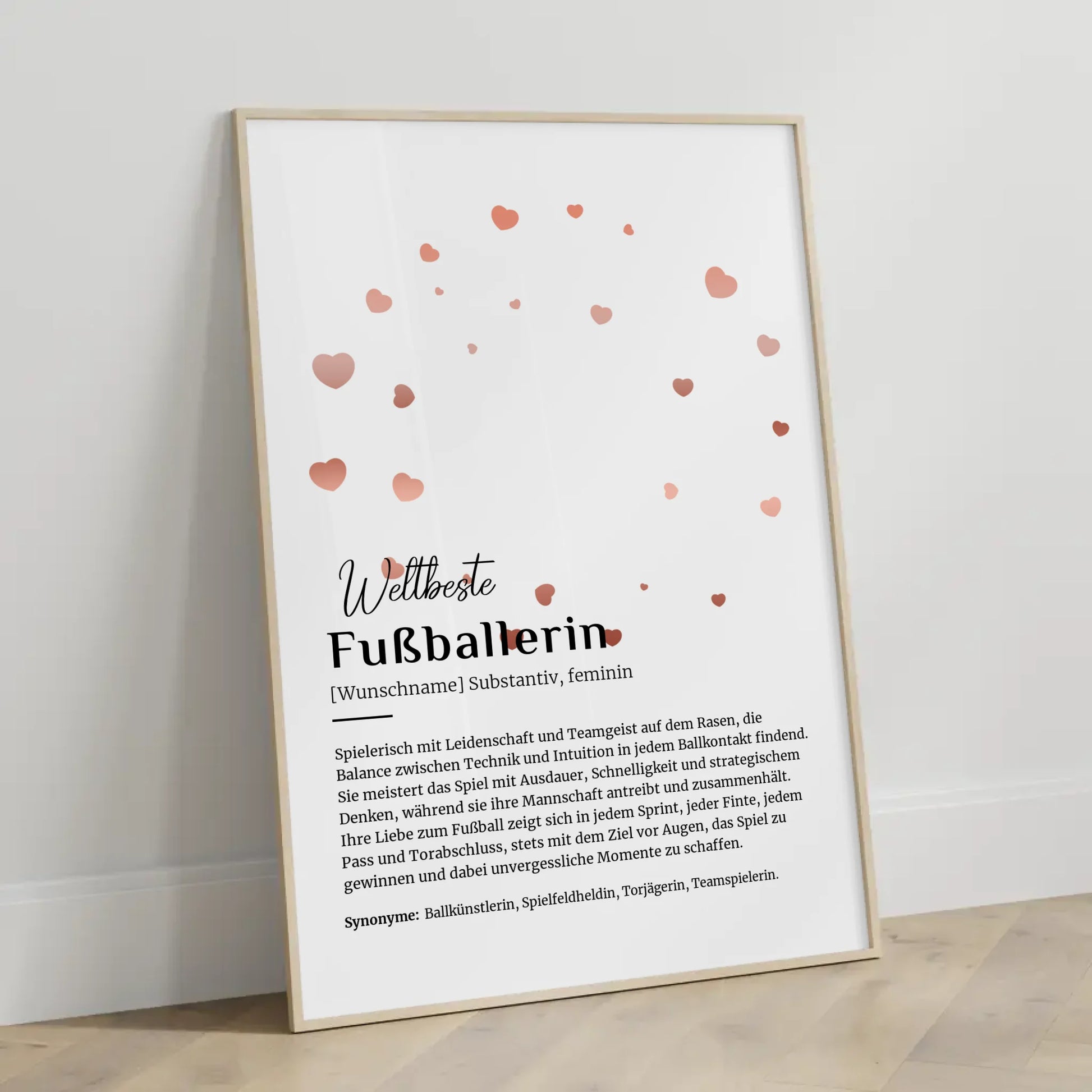 Egal ob zum Geburtstag, Weihnachten oder als besondere Überraschung zwischendurch – dieses personalisierte Poster ist das ideale mit Namen Geschenk. Es fängt die Leidenschaft und den Teamgeist jeder Fußballerin ein und wird garantiert zum Hingucker in jedem Raum.