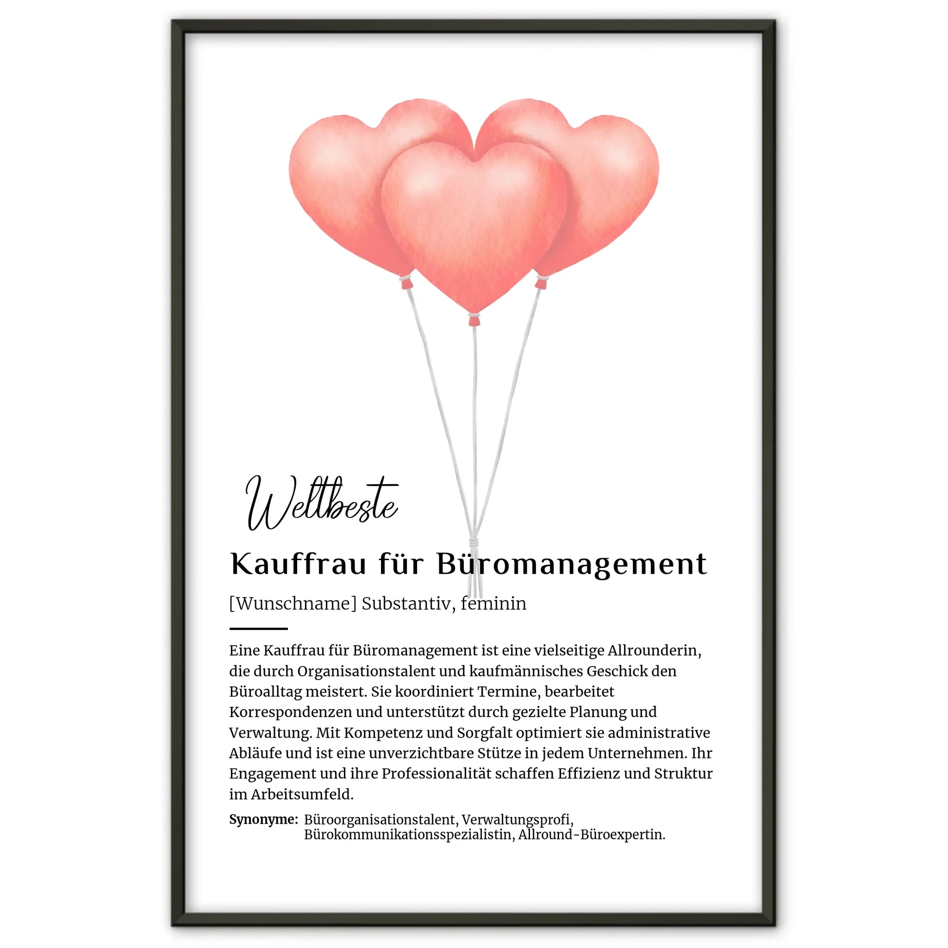 Personalisierte Poster Definition Kauffrau für Büromanagement mit Namen Geschenk