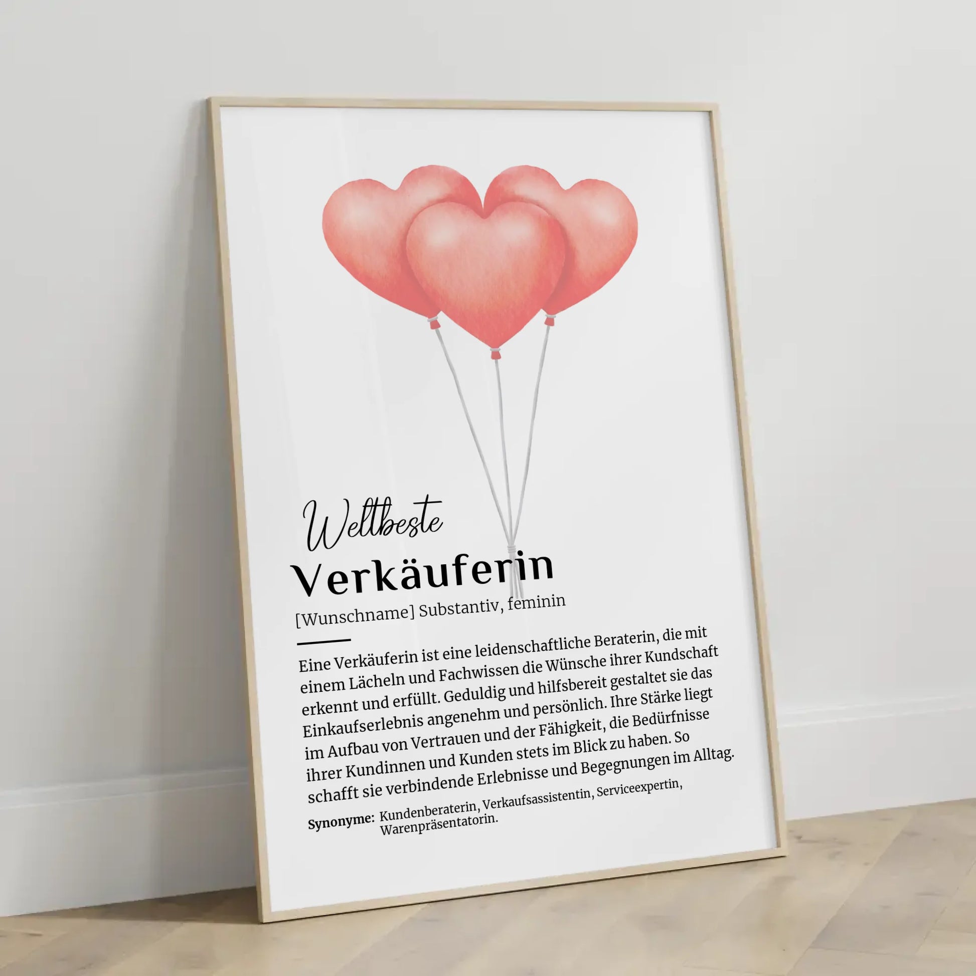 Egal ob du selbst als Verkäuferin, Verkäufer, Freund oder Familienmitglied nach einem besonderen Geschenk suchst – unser personalisiertes Poster ist die perfekte Wahl. Es eignet sich hervorragend für Anlässe wie Geburtstage, Hochzeiten, Jubiläen oder einfach als liebevolle Geste zwischendurch.