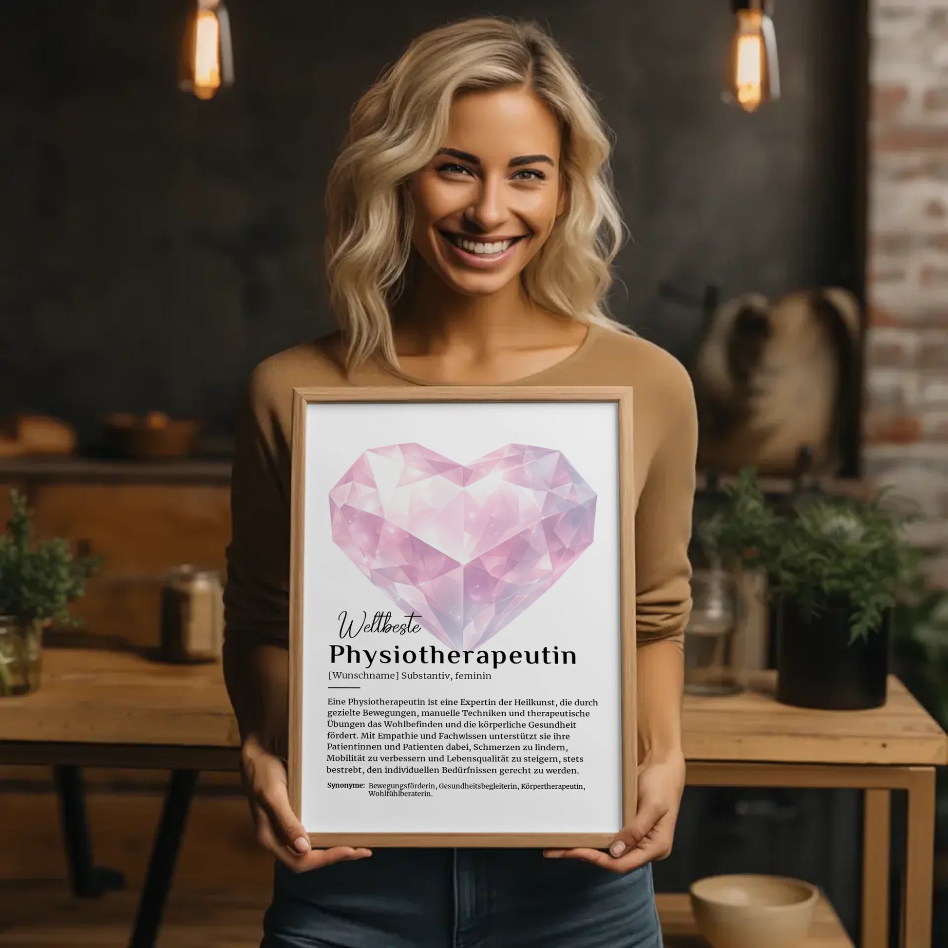 Mache jetzt jemandem eine Freude und gestalte dein eigenes Personalisierte Poster Definition Physiotherapeutin mit Namen. Es ist mehr als nur ein Geschenk – es ist eine persönliche Botschaft voller Anerkennung und Wertschätzung!