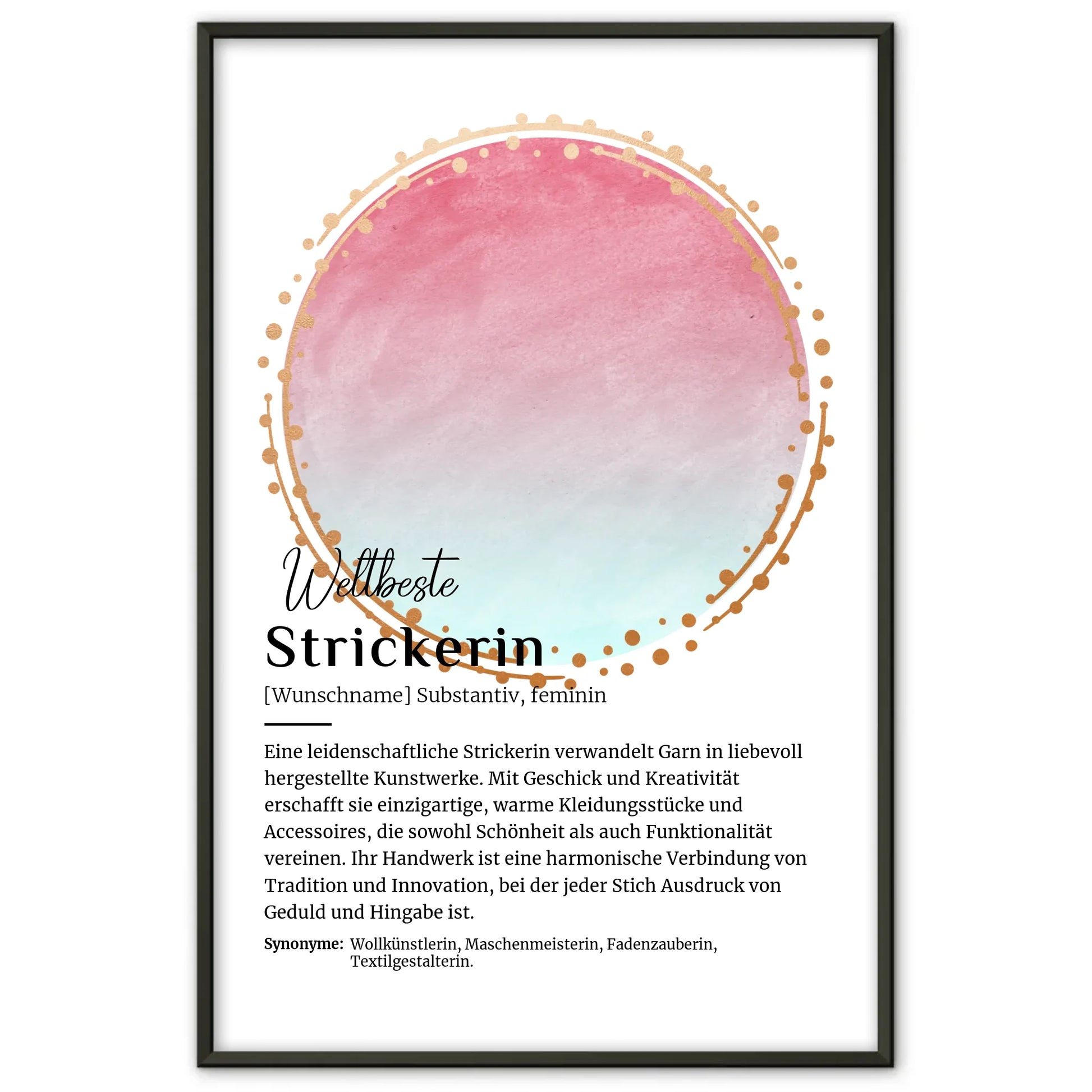 Personalisierte Poster Definition Strickerin Stricken mit Namen Geschenk