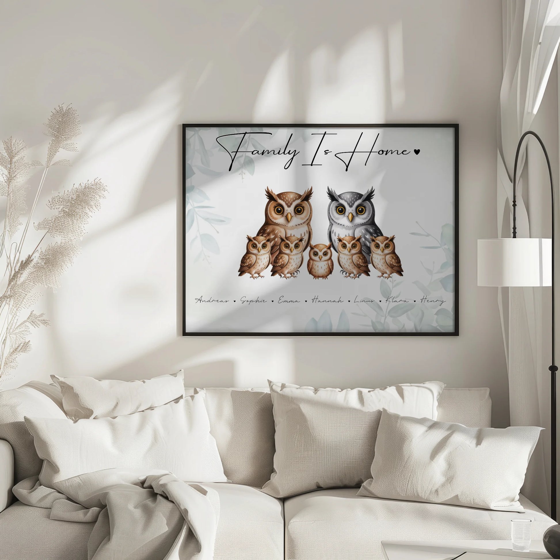 Die Personalisierung ist kinderleicht: Füge die **Namen** deiner Familienmitglieder hinzu und kröne dein **Familie Personalisiert Poster** mit einem **eigenen Spruch oder Wunschtext**. Ob ein liebevolles Zitat, ein Insider-Witz oder einfach nur 'Wir haben dich lieb' – gestalte **Poster Sprüche Familie**, die berühren. So wird jedes **Personalisierte Poster Familie** zu einem Unikat und einem echten Hingucker in jedem Zuhause. Das **Familienposter Gestalten** macht Spaß und das Ergebnis ist ein herzerwärmendes **Familienporträt** der besonderen Art, bei dem deine **Familie als Eulen** dargestellt wird.