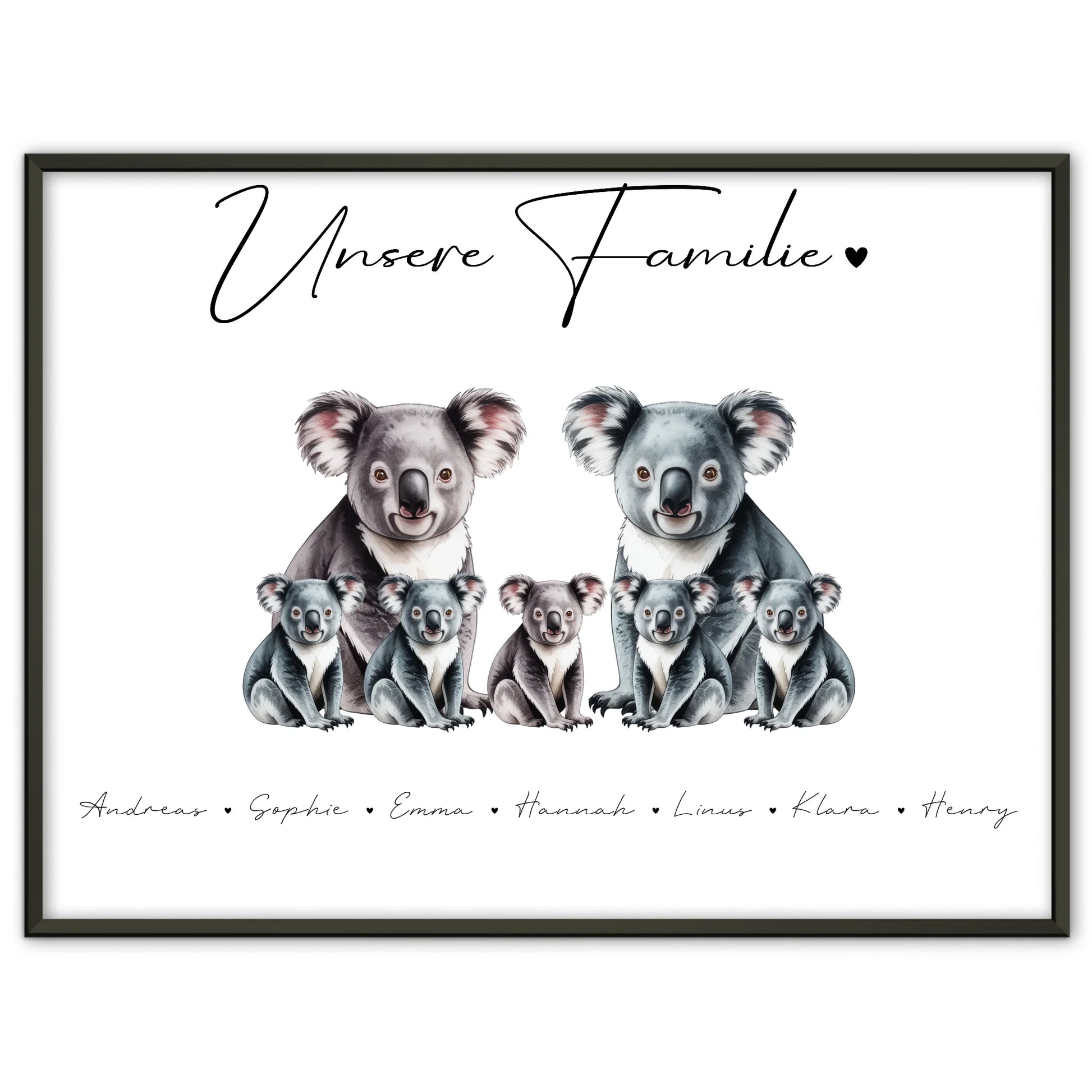 Personalisierte Poster Familie Koala Familienporträt Geschenk für Papa Mama Oma Opa