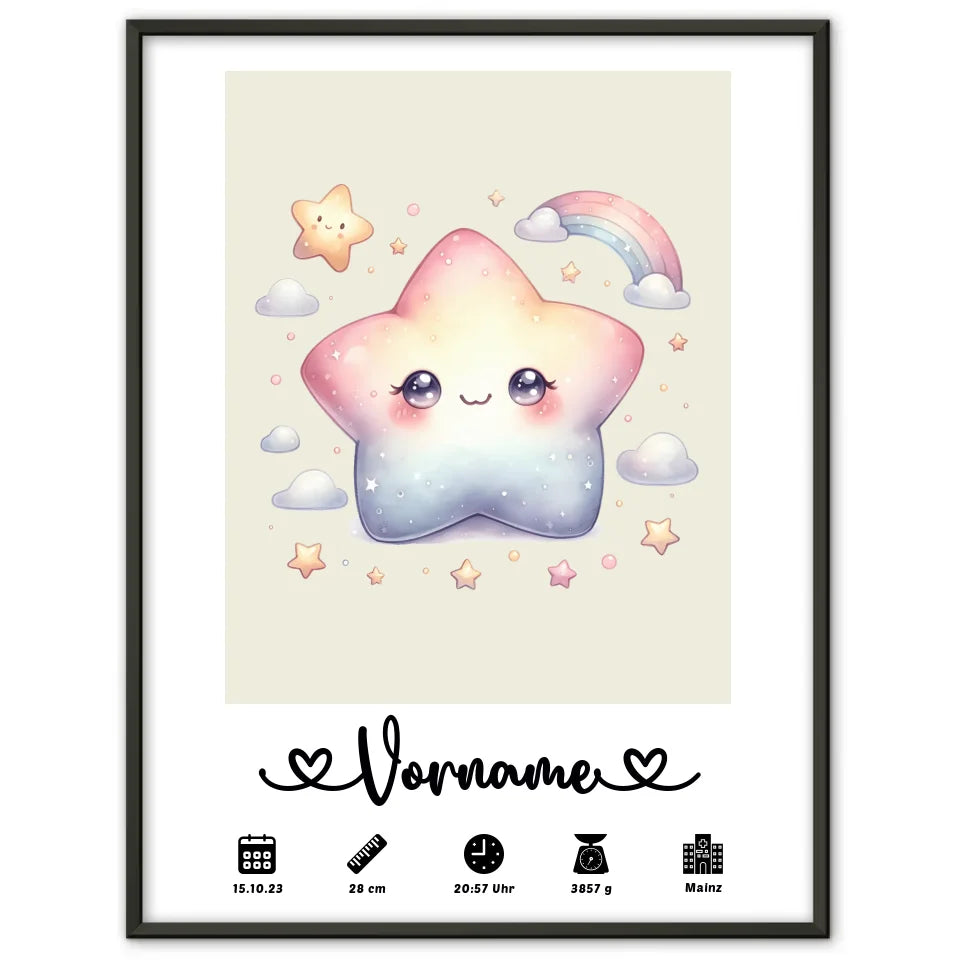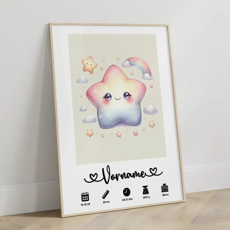 Personalisierte Poster Geburt Stern Sweet Cremeweiß für Kinderzimmer