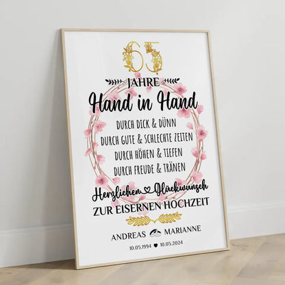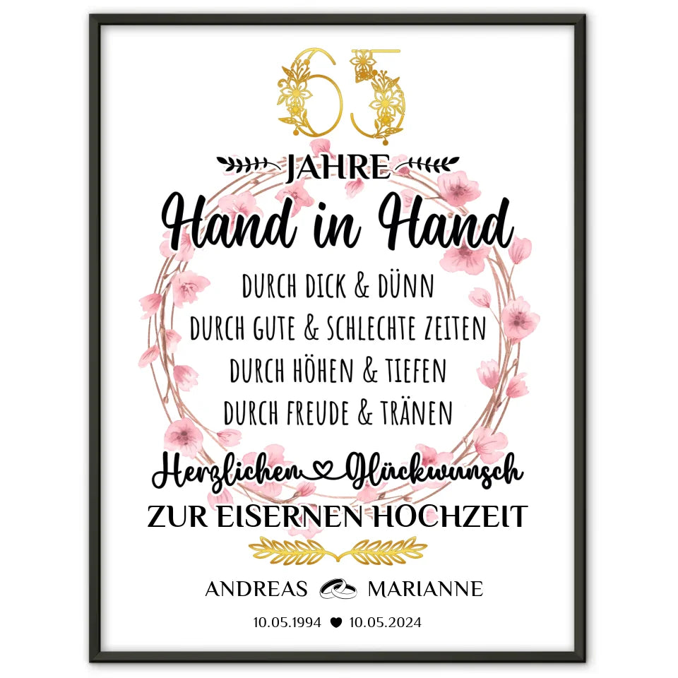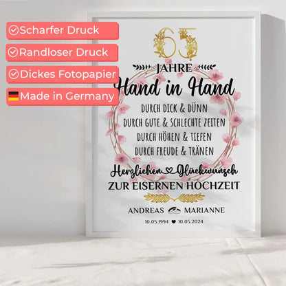Personalisierte Poster Geschenk 65 Hochzeitstag zur Eisernen Hochzeit
