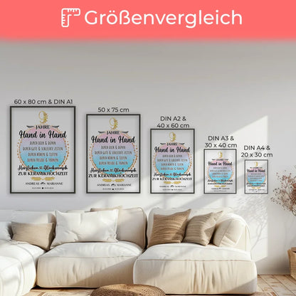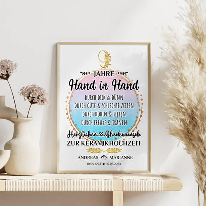 Personalisierte Poster Geschenk 9 Hochzeitstag zur Keramikhochzeit Hand in Hand Mit Namen