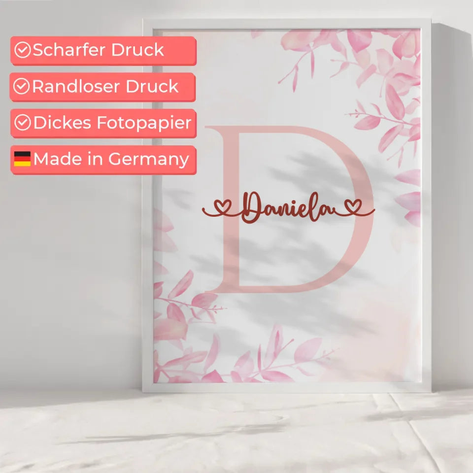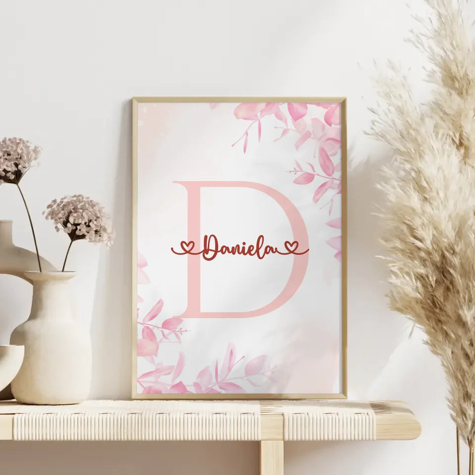 Personalisierte Poster mit Anfangsbuchstaben D für Mädchen und Jungen