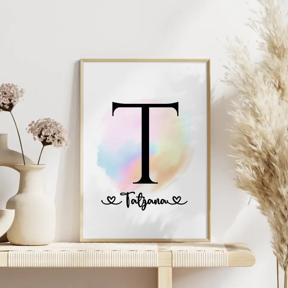 Suchst du nach einem einzigartigen Geschenk, das sowohl stilvoll als auch personalisiert ist? Unsere personalisierten Poster mit Anfangsbuchstaben T und Farbtupfer A-Z sind die perfekte Wahl für besondere Anlässe wie Geburtstage oder Weihnachten. Du kannst den Initialbuchstaben, den Namen und das Hintergrundbild ganz nach deinem Geschmack anpassen, um ein individuelles Kunstwerk zu schaffen, das deinen Lieben ein Lächeln ins Gesicht zaubert.
