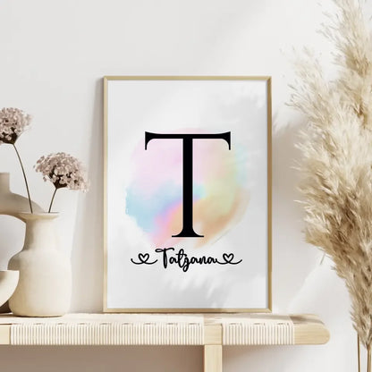 Personalisierte Poster mit Anfangsbuchstaben T und Farbtupfer A-Z