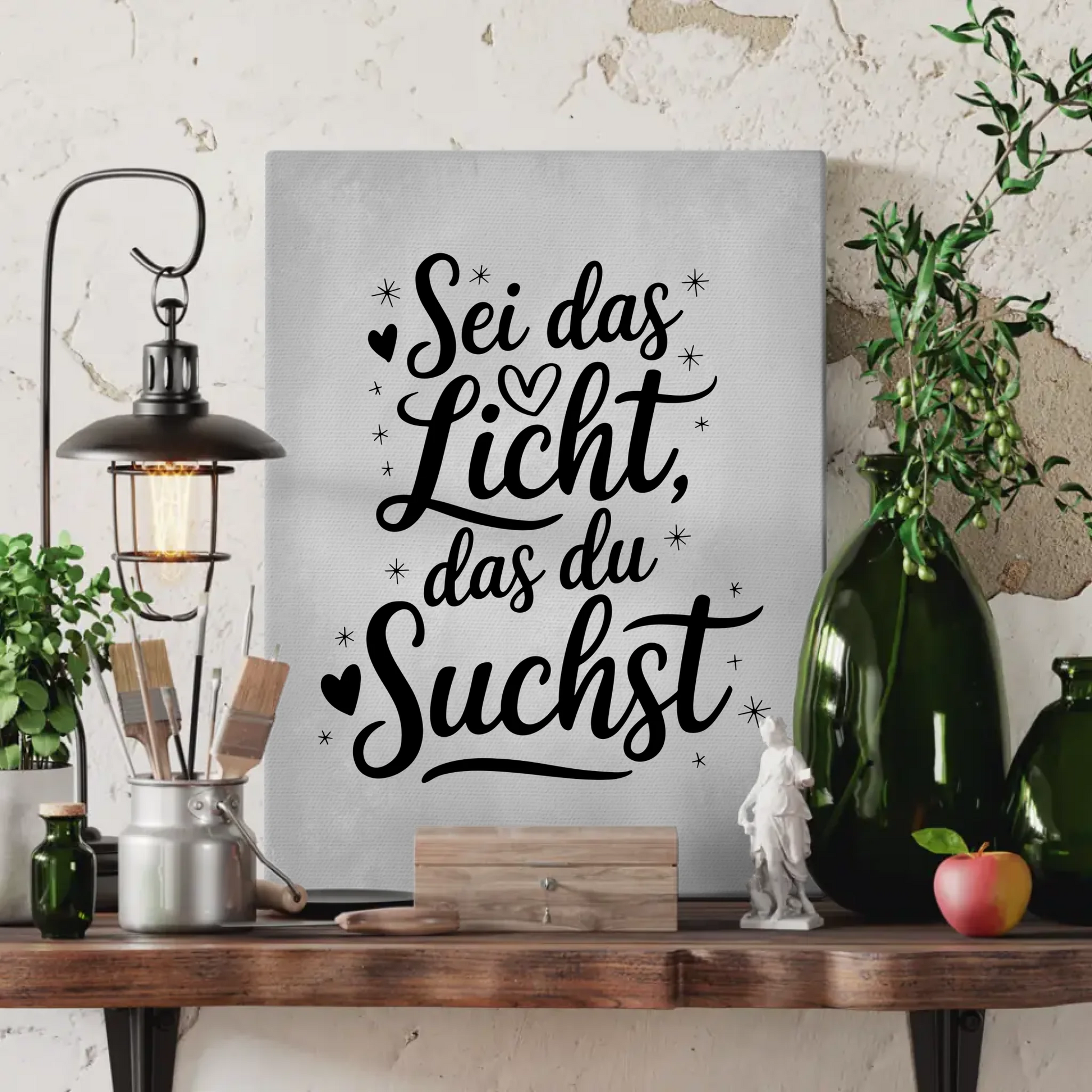 Personalisierte Sprüche Leinwand Sei das Licht das du suchst