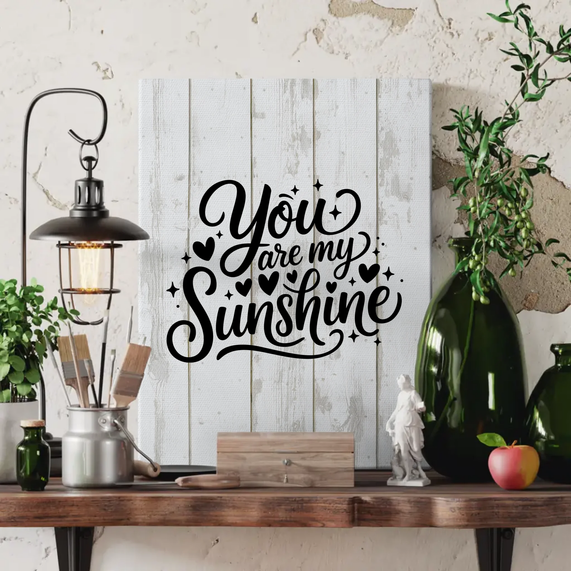 Die 'You are my sunshine' Leinwand besticht durch ihre individuelle Gestaltungsmöglichkeit. Du hast die Freiheit, die Sprüche Leinwand selbst zu kreieren und deinem persönlichen Stil anzupassen. Schaffe Erinnerungen und eine positive Stimmung mit dieser Motivationssprüche Leinwand, die Herzen berührt.