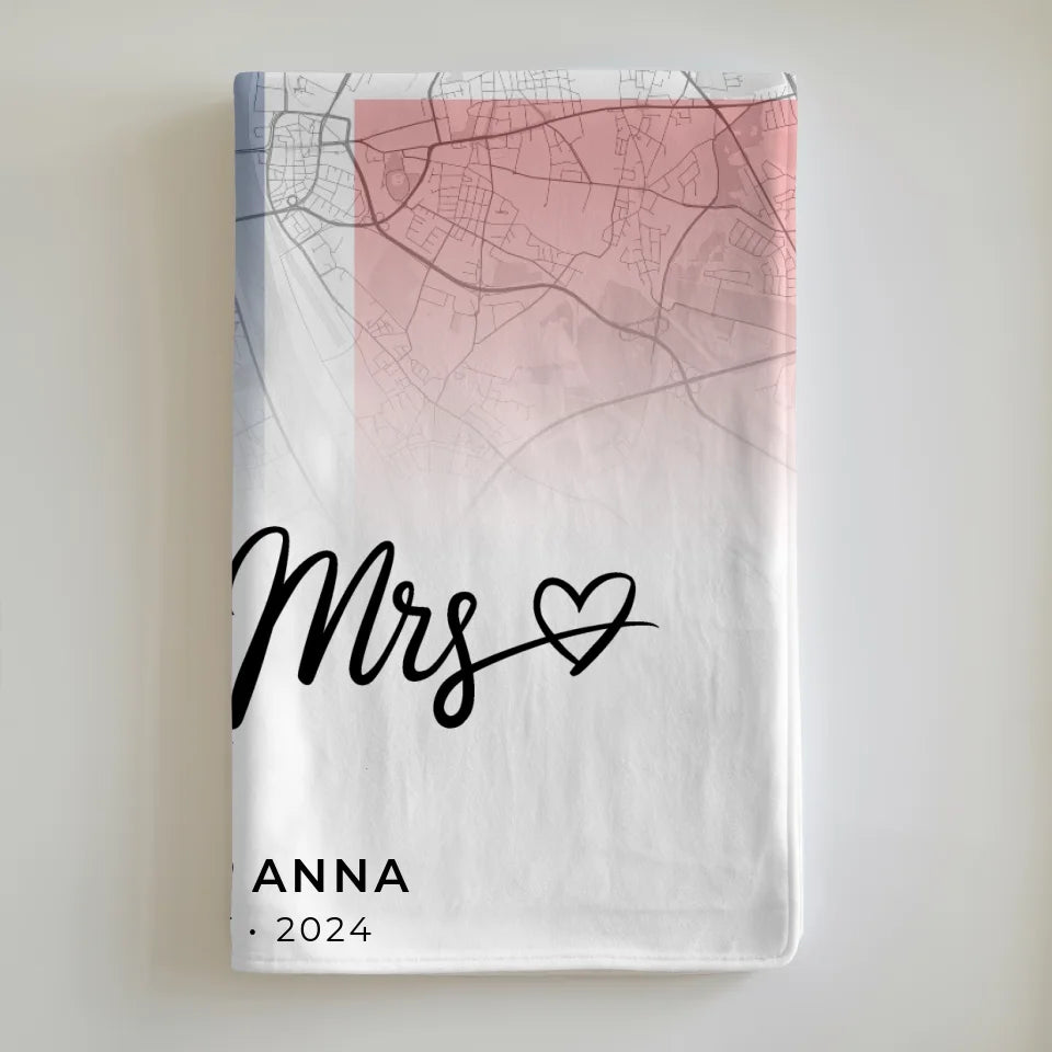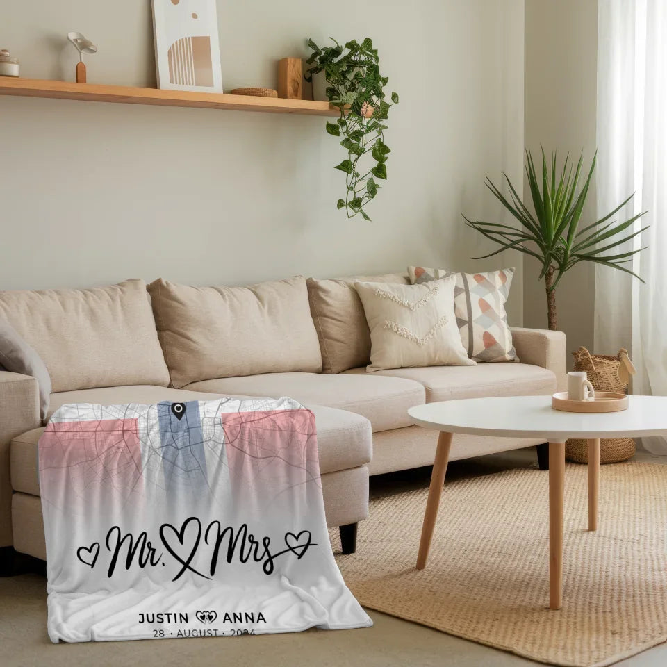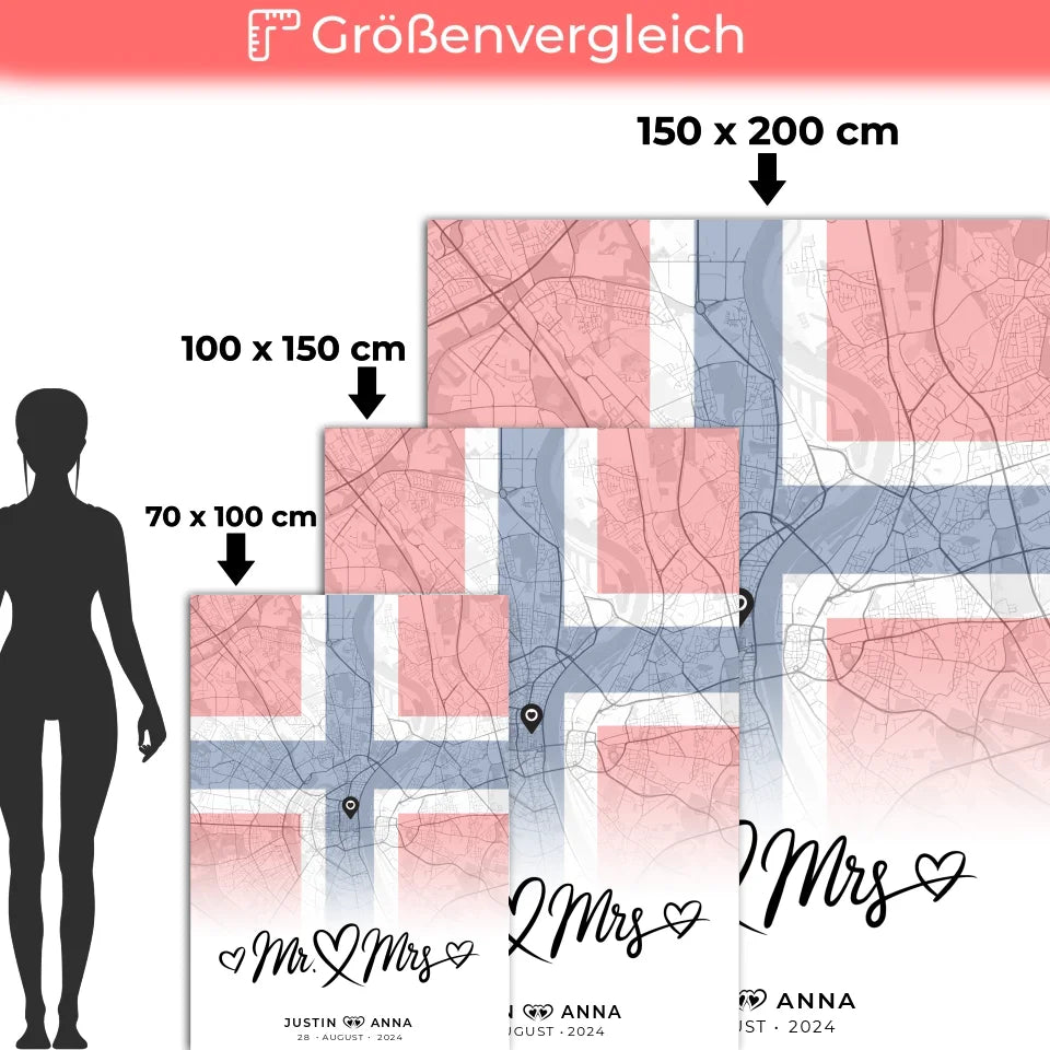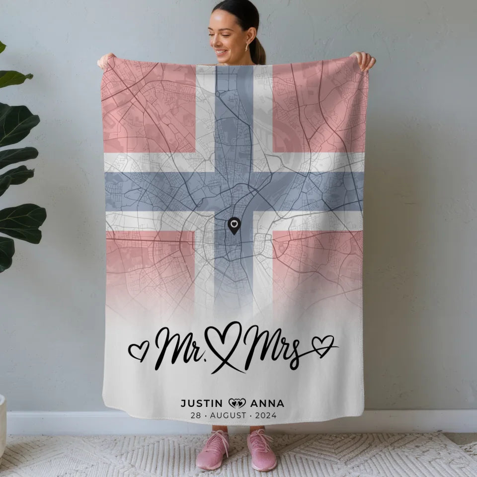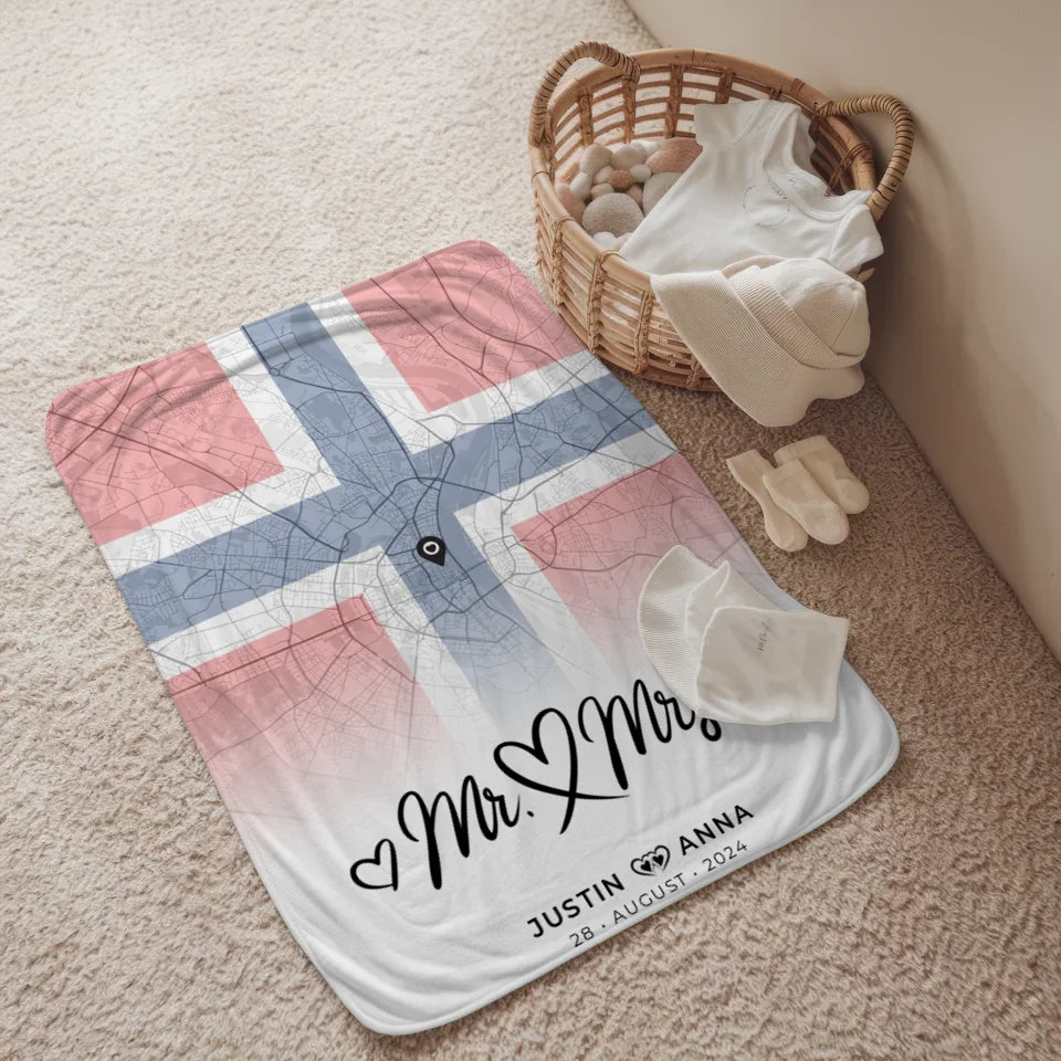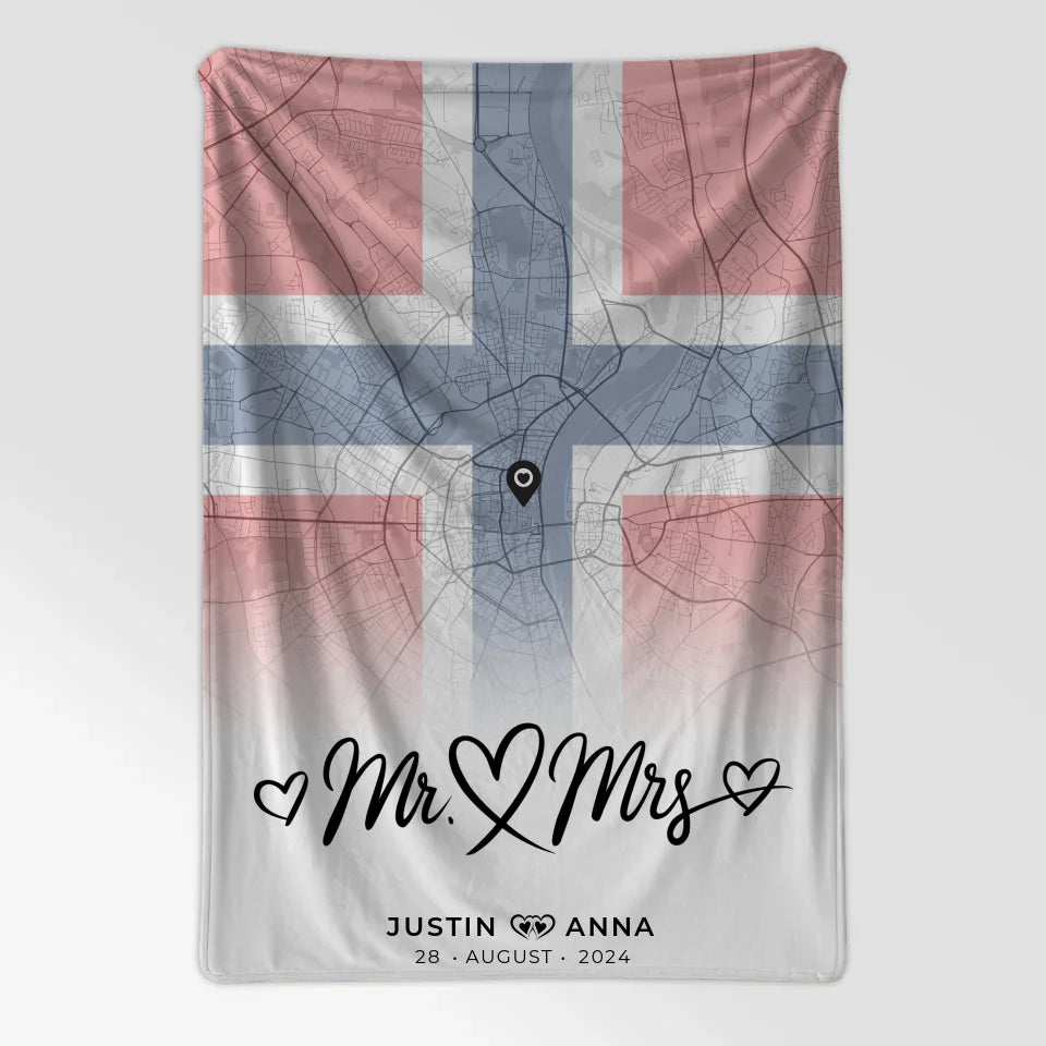 Personalisierte Stadtkarten Decke für Paare aus Norwegen Mr & Mrs Foto Map Marker