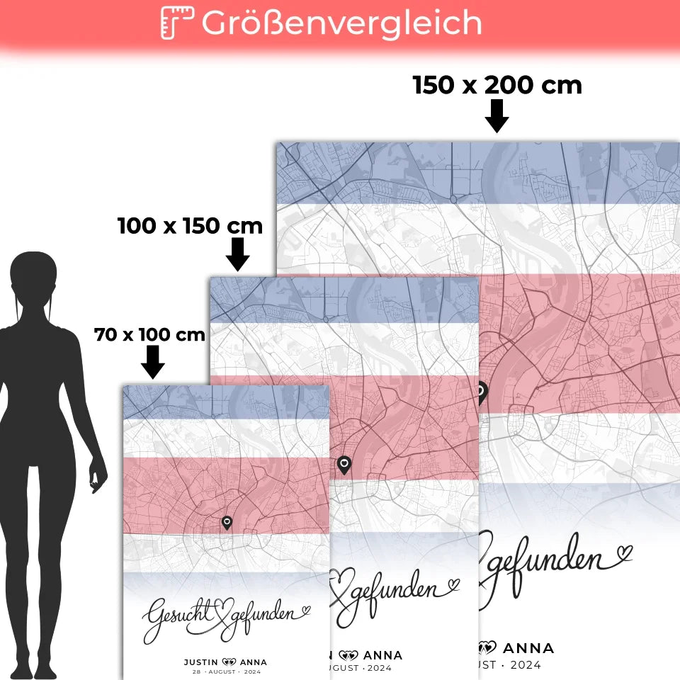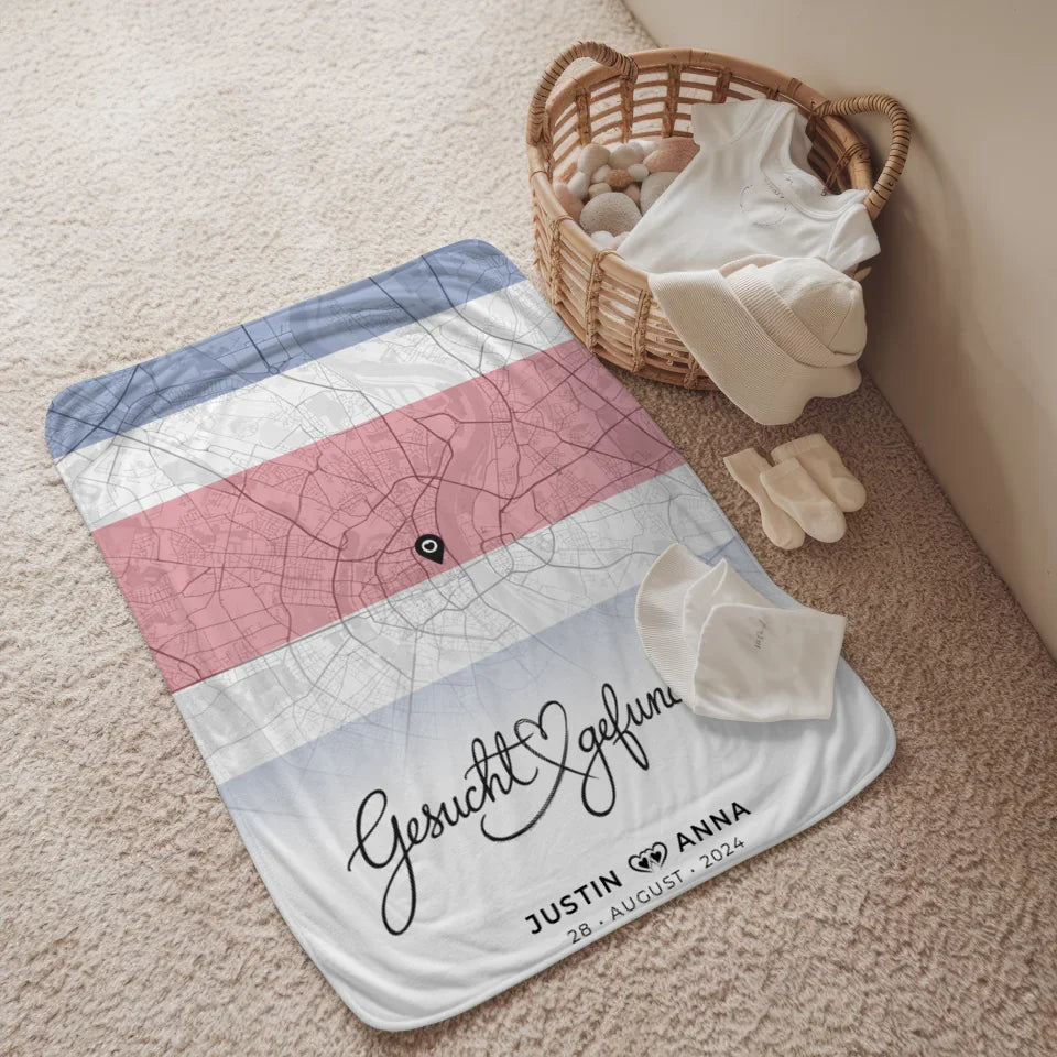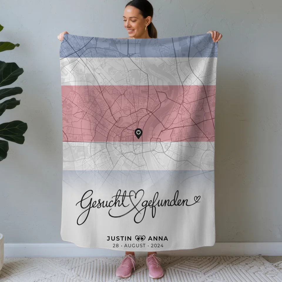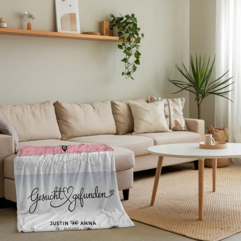 Mach deinen Liebsten eine Freude mit unserer einzigartigen personalisierten Stadtkarten Decke für Paare, die speziell für euren Costa Rica Urlaub entworfen wurde. Diese Decke ist nicht nur warm und kuschelig, sondern auch ein wunderschönes Erinnerungsstück an euer gemeinsames Abenteuer. Mit dem herzlichen Spruch 'Gesucht & Gefunden' wird sie zum perfekten Symbol eurer Liebe.